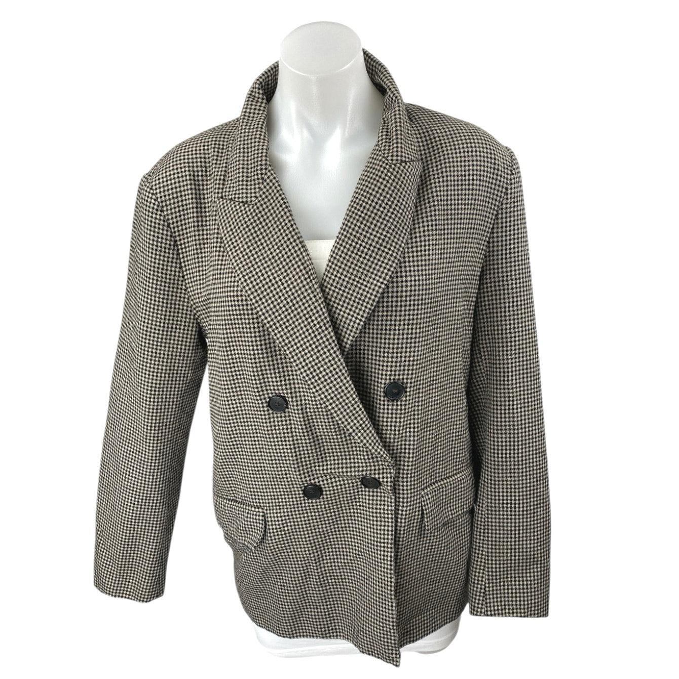 Zara Women's Black White Checkered Double Breasted Long Sleeve Blazer Coat Jacket L