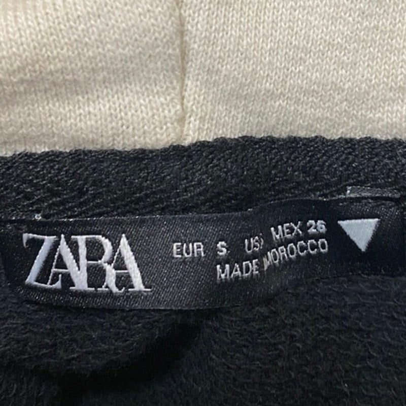 Zara Women's Black White Colorblock Hoodie Hooded Cropped Sweatshirt Top Size S