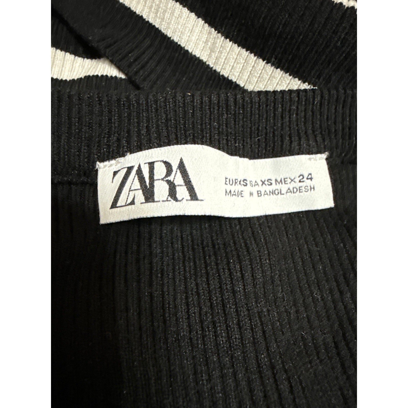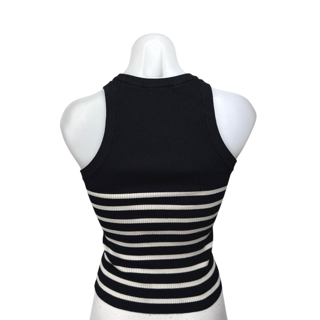 Zara Women's Black White Rib Knit Striped Sleeveless Racerback Crop Tank Top XS