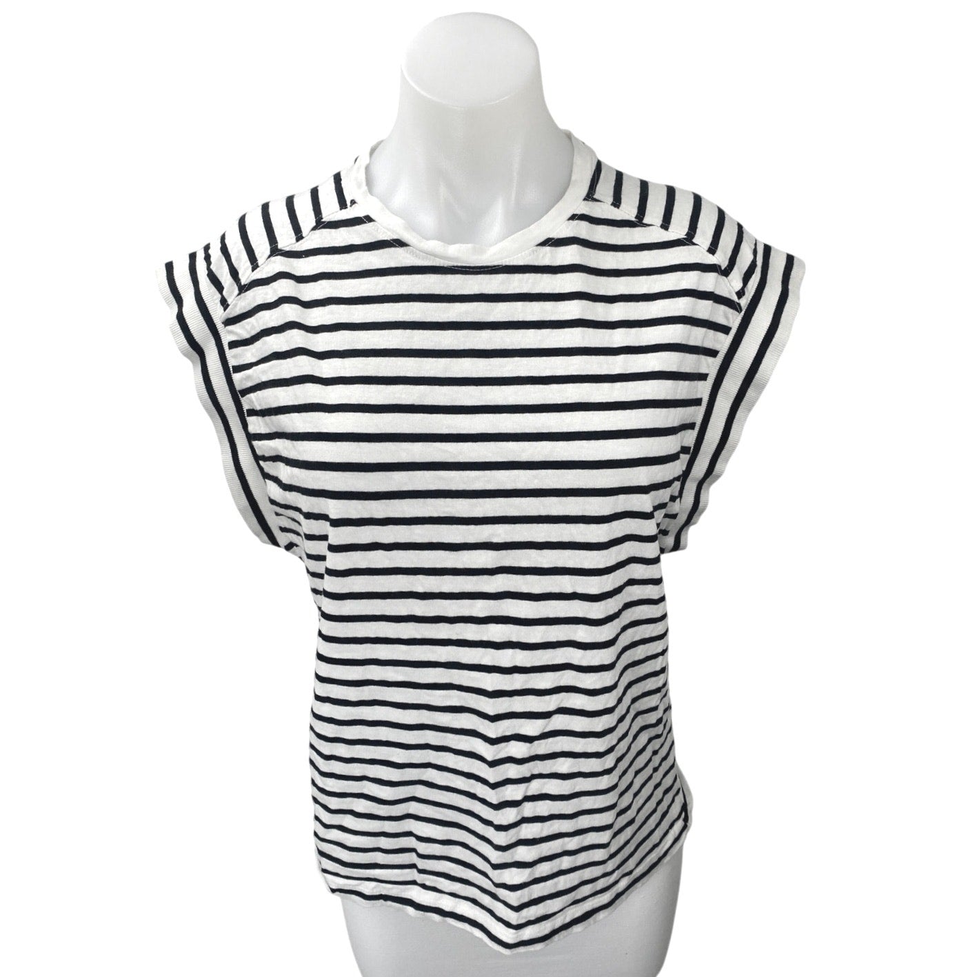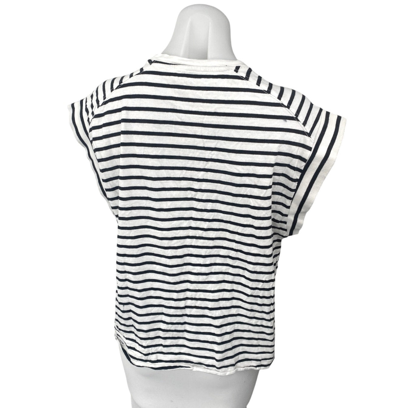 Zara Women's Black White Striped Short Sleeve Crewneck Casual Tee T-shirt Top L