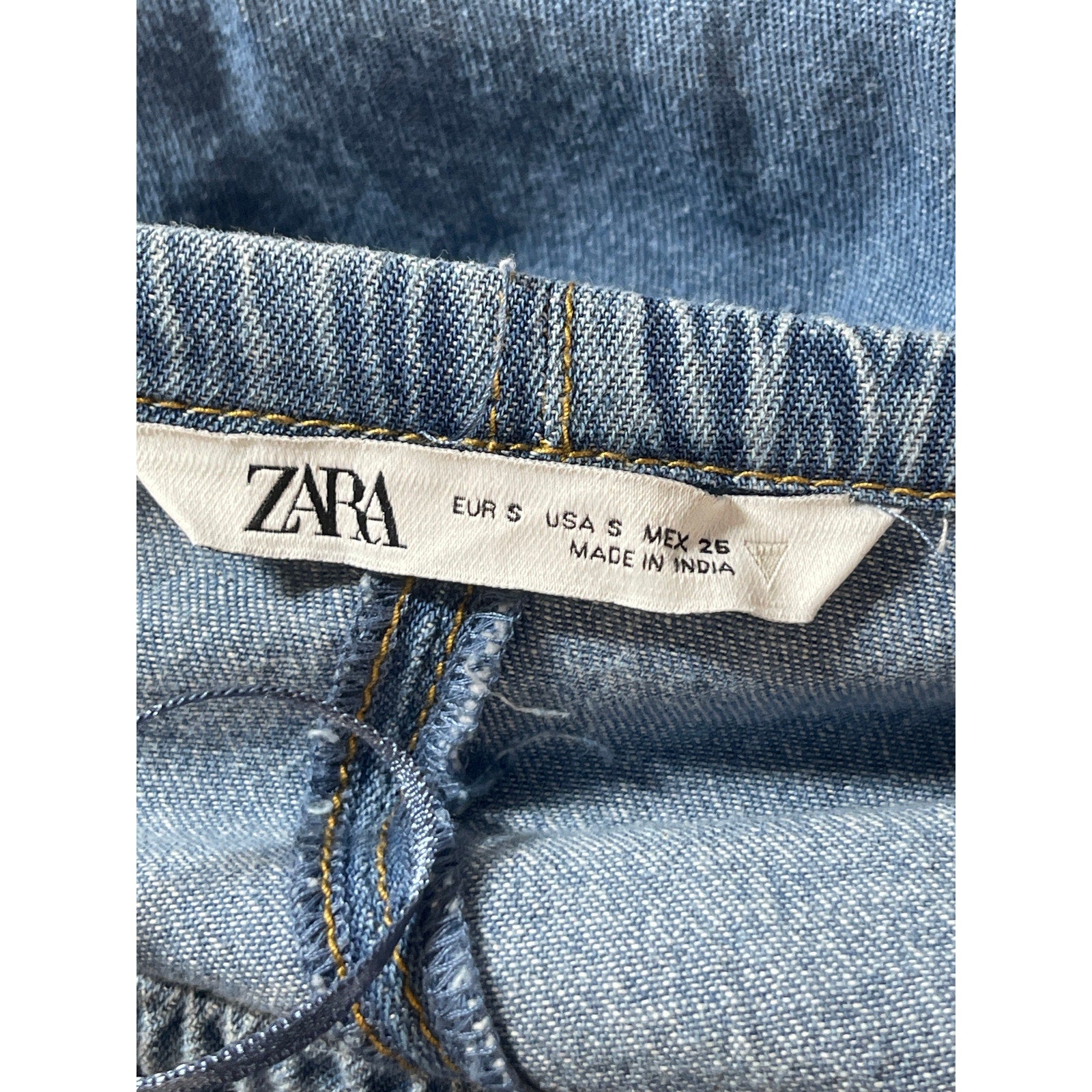 Zara Women's Blue Floral Embroidered Elastic Waist Denim Jeans Maxi Skirt Size S
