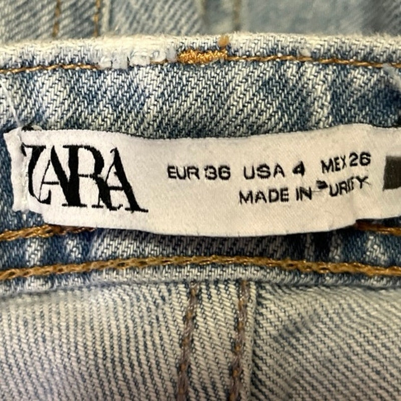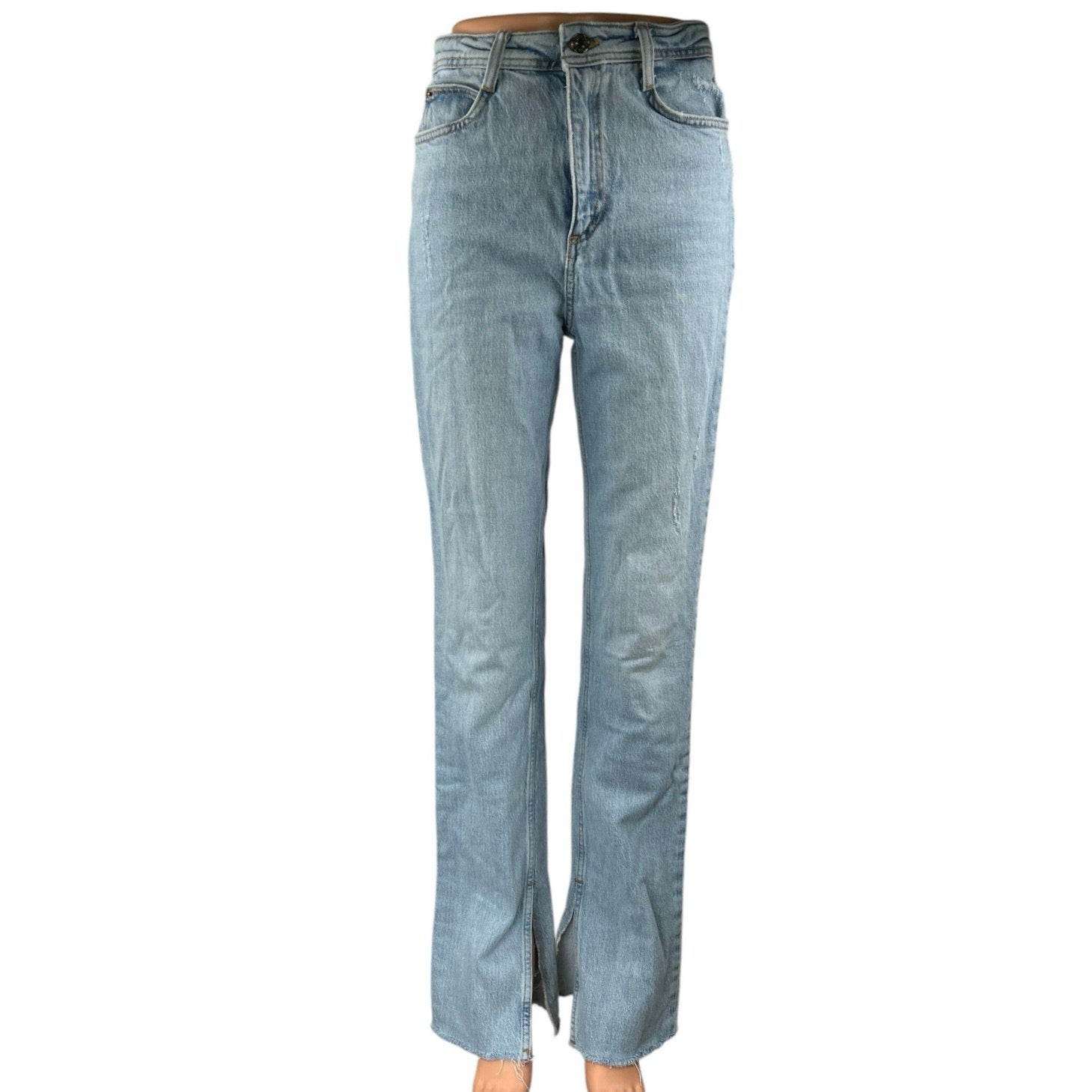 Zara Women's Blue High Waist Frayed Split Hem Flared Bootcut Denim Jeans Pants 4