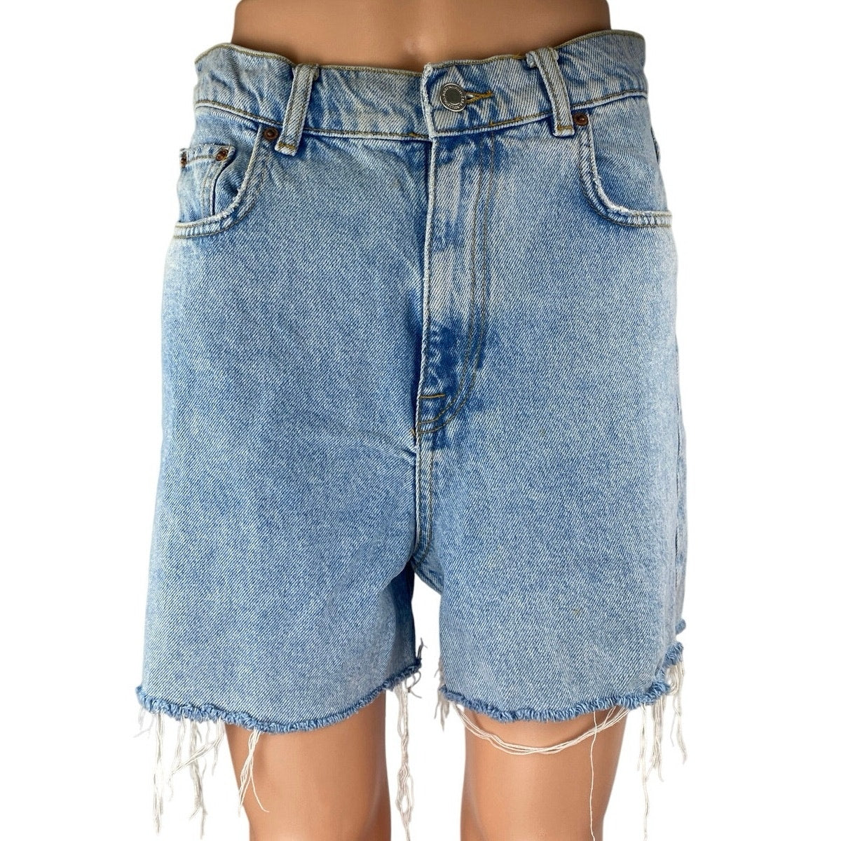 Zara Women's Blue High Waisted Raw Hem Boyfriend Bermuda Denim Jean Shorts 4