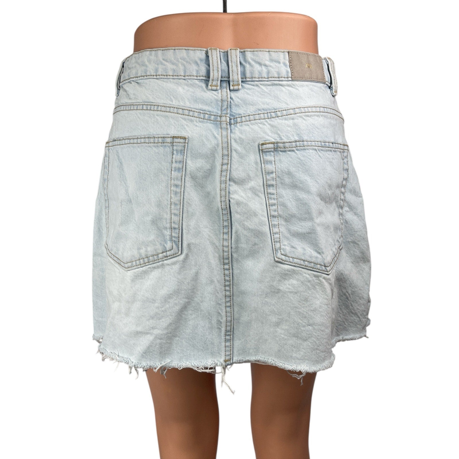 Zara Womens Blue Light Wash Distressed Frayed Raw Hem Mini Denim Jeans Skirt S
