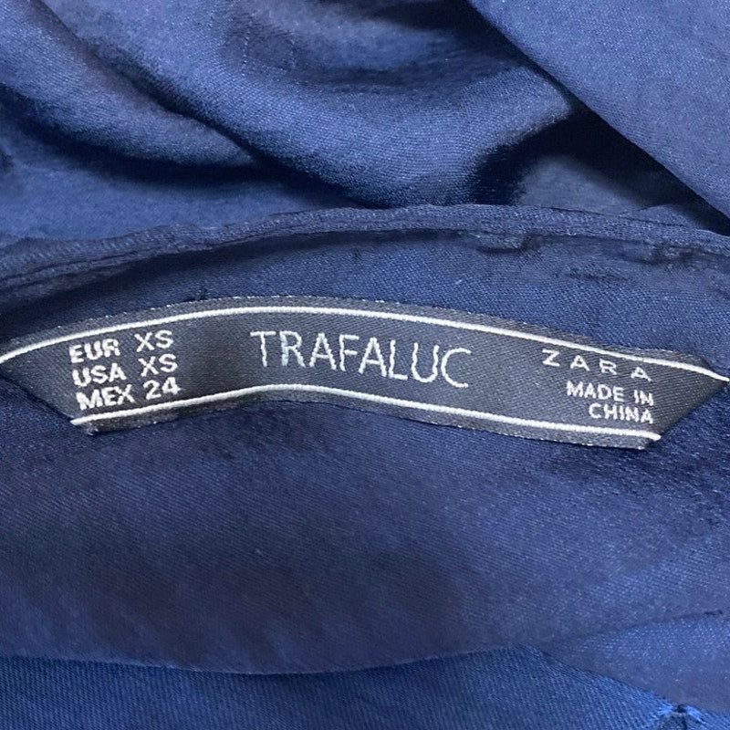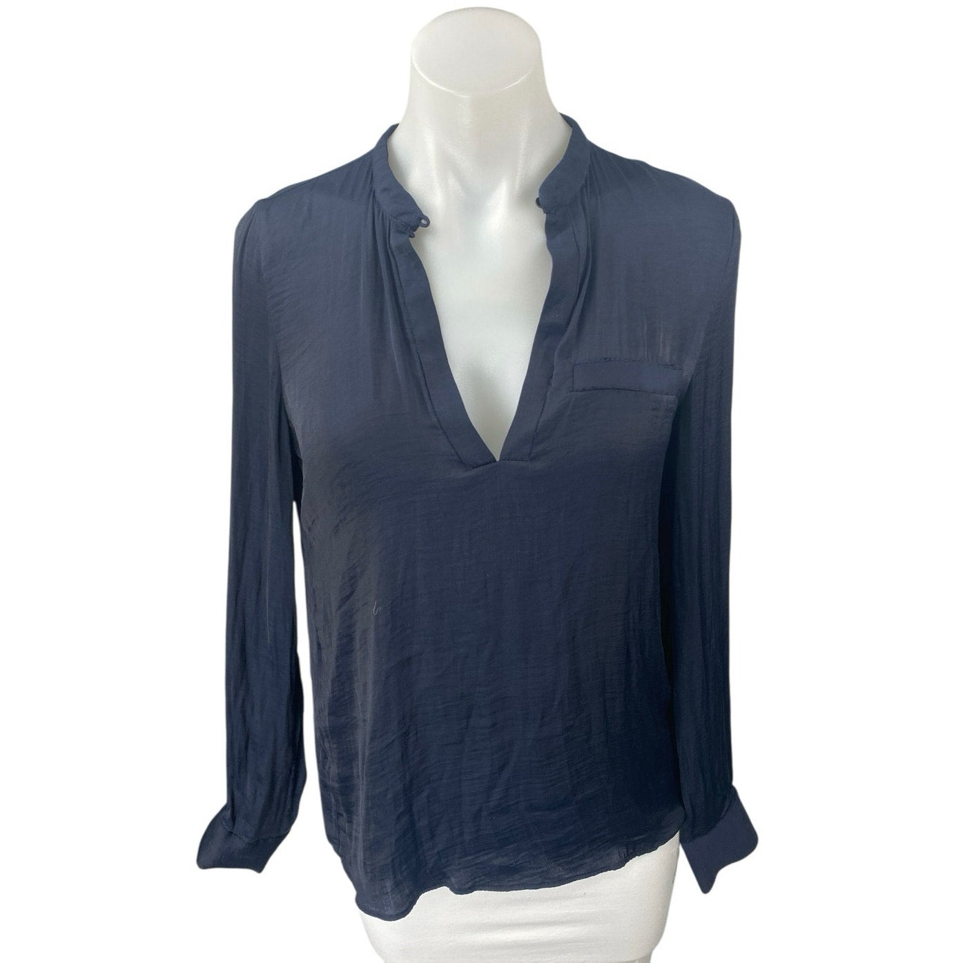 Zara Women's Blue Long Sleeve Plunge V-Neck Pocket Shirt Blouse Top Size XS
