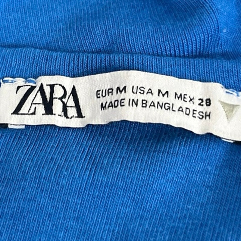 Zara Women's Blue Short Sleeve Crew Neck Knit T Shirt Tee Crop Top Size M
