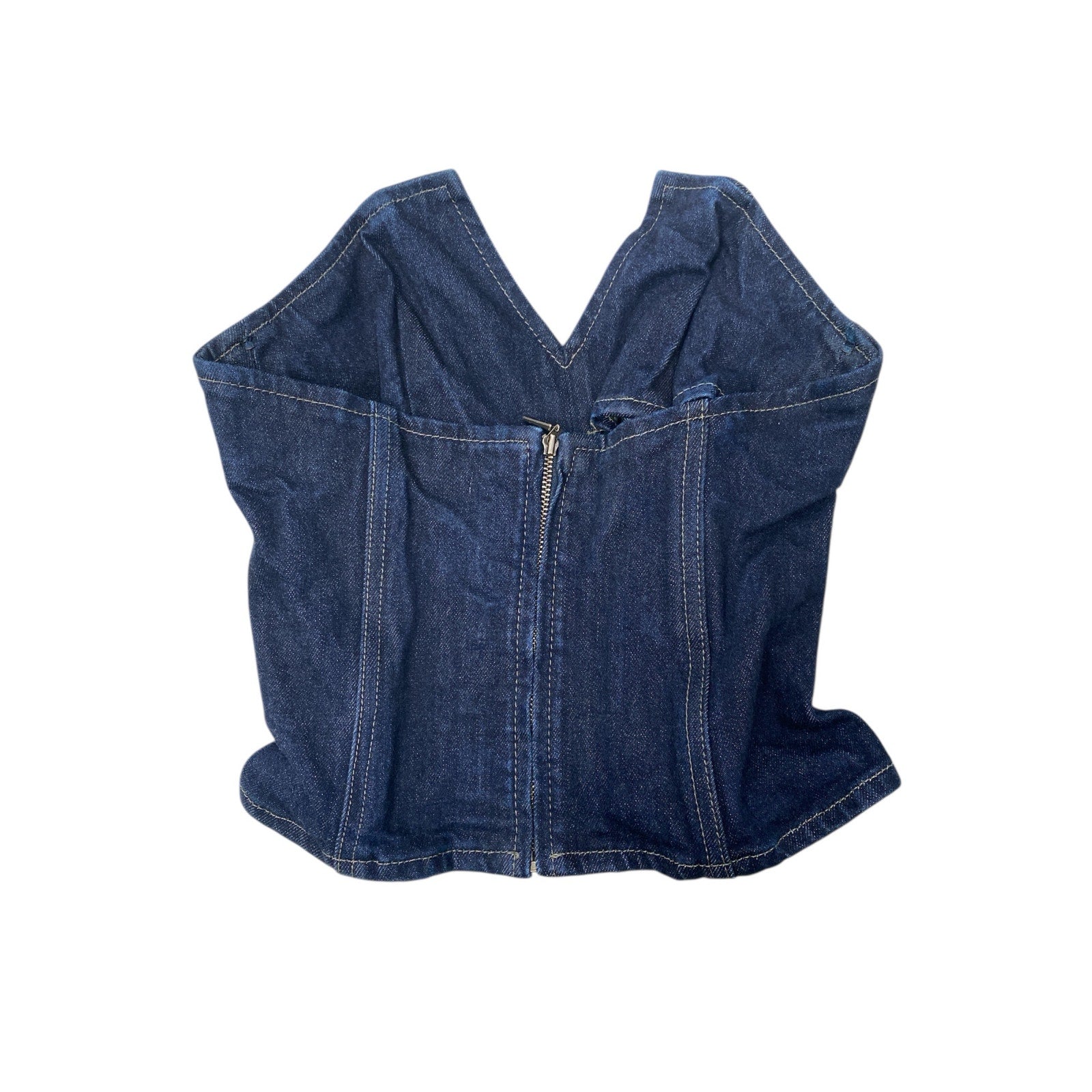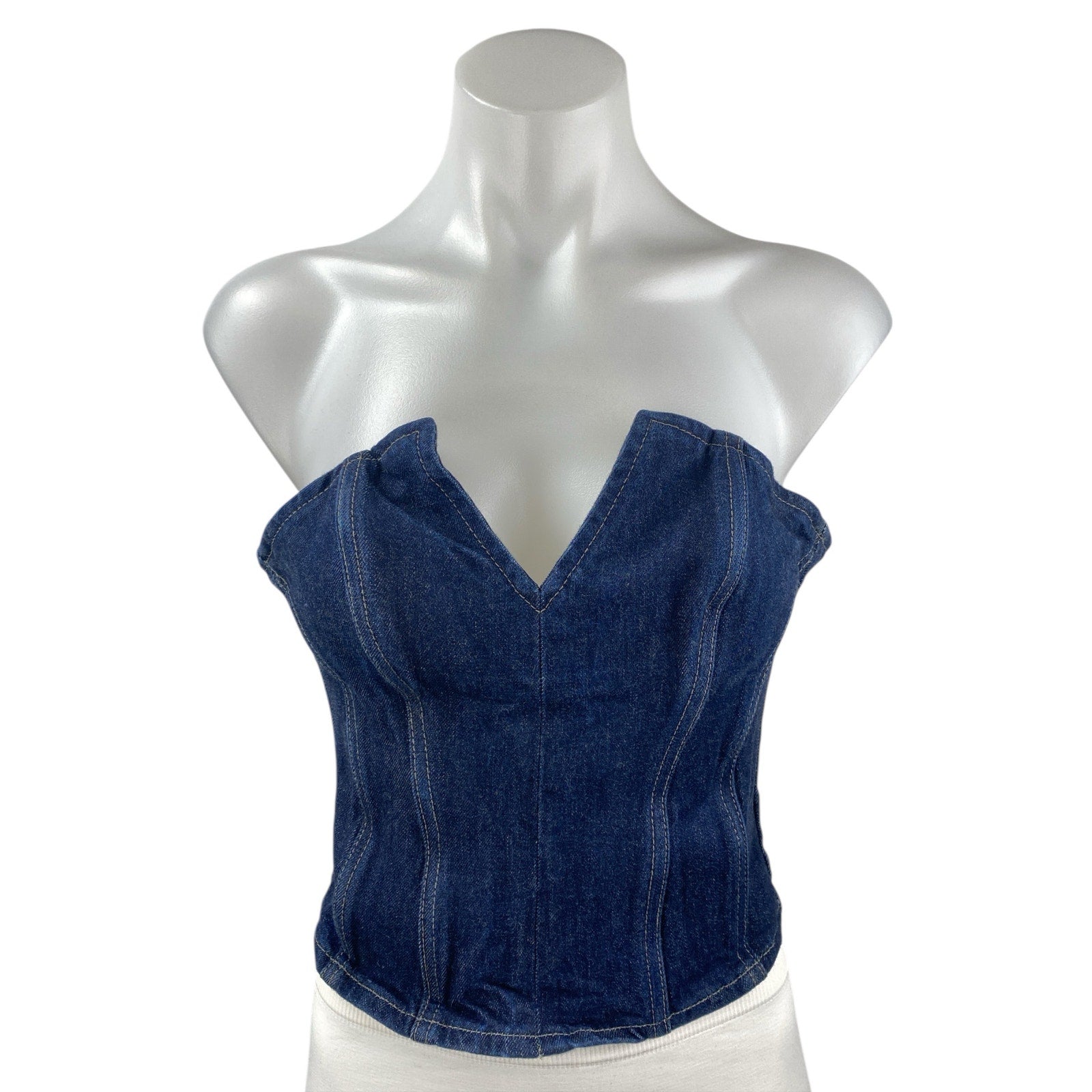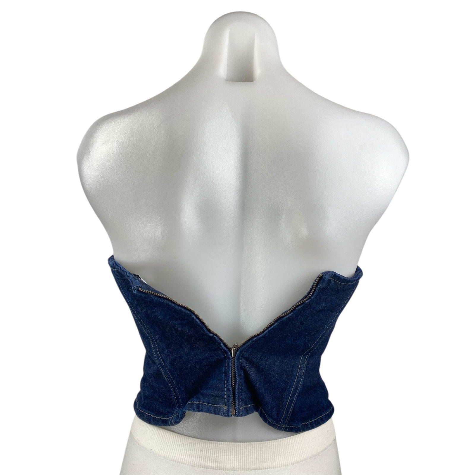 Zara Women's Blue Strapless Sleeveless V Neck Zip Denim Jean Crop Top Size XS