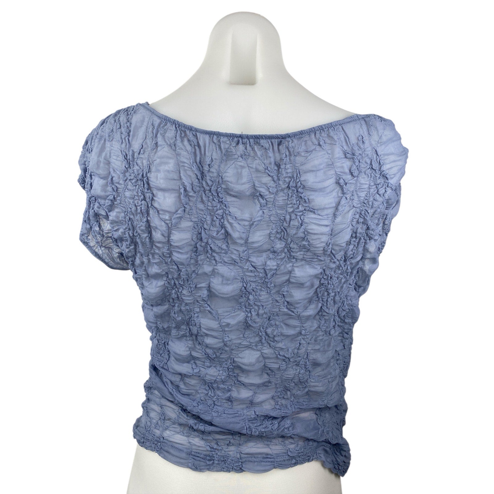 Zara Womens Blue Textured Ruched Cowl Neck Short Cap Sleeve Blouse Top Size L