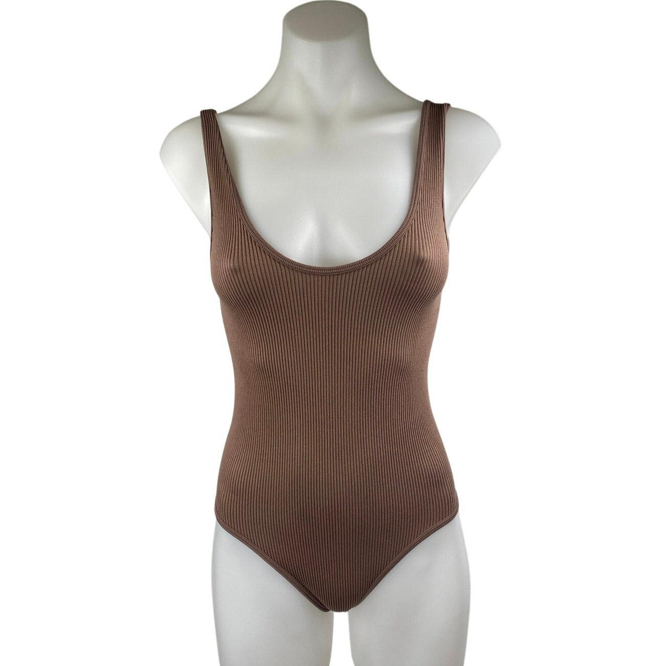 Zara Women's Brown Rib Knit Sleeveless Scoop Neck Bodysuit Tank Top Size XS-S