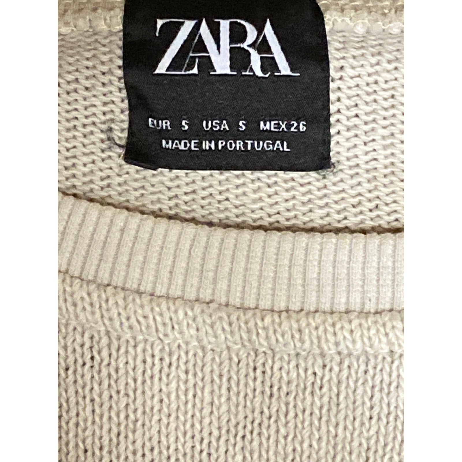 Zara Women's Cream Black Tie Dye Crewneck Long Sleeve Sweatshirt Sweater Top S