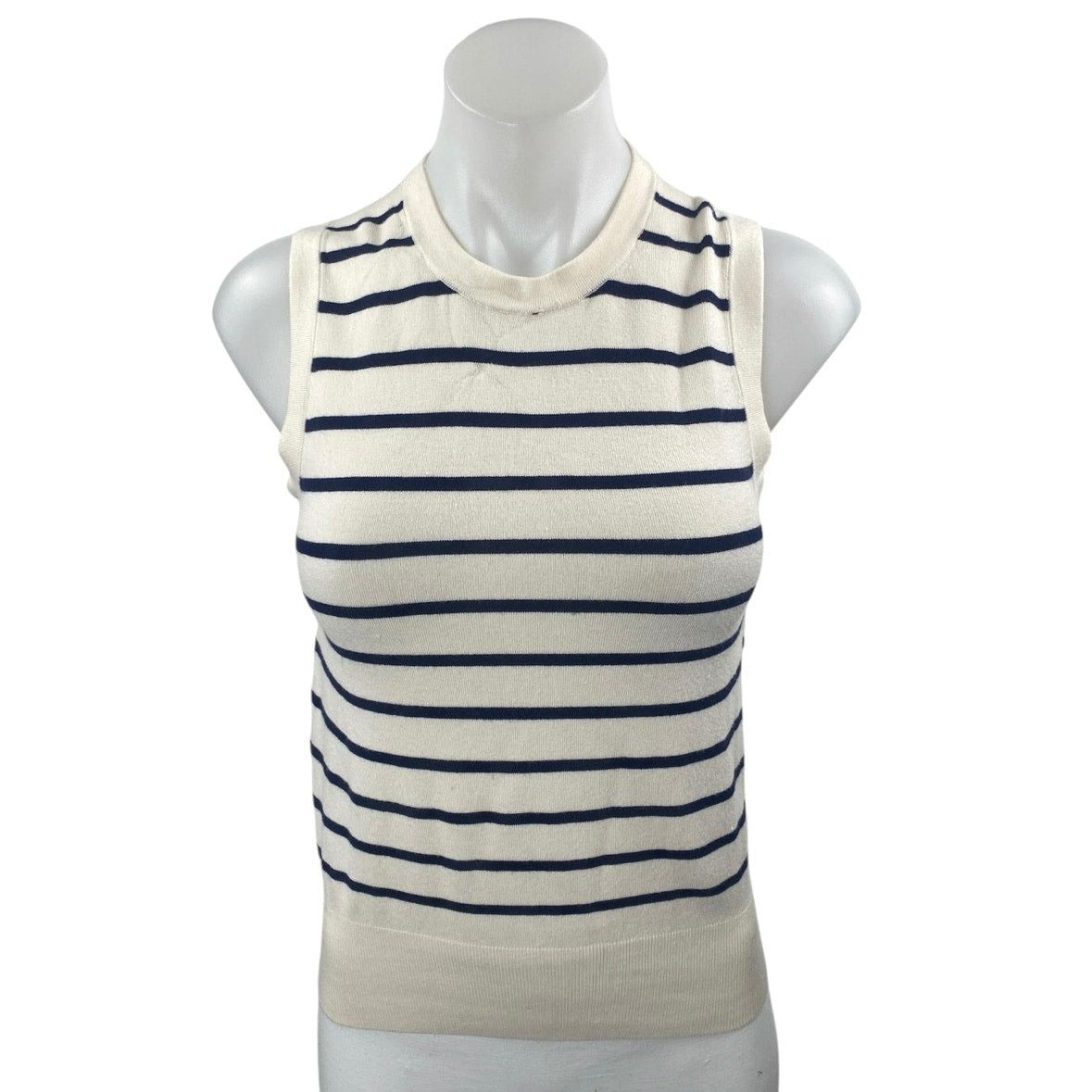 Zara Women's Cream Blue Striped Sleeveless Knit Crop Sweater Vest Tank Top Size S