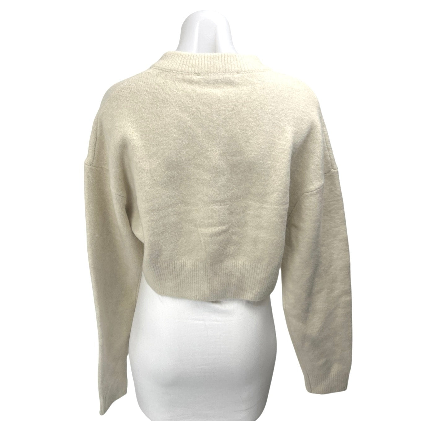 Zara Women's Cream Knit Button Down Cropped Cardigan Sweater Top Size M