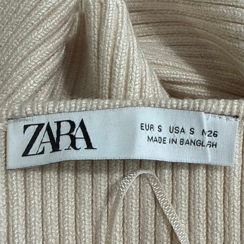 Zara Women's Cream Rib Knit Sleeveless Stretch Corset Crop Tank Top Size S