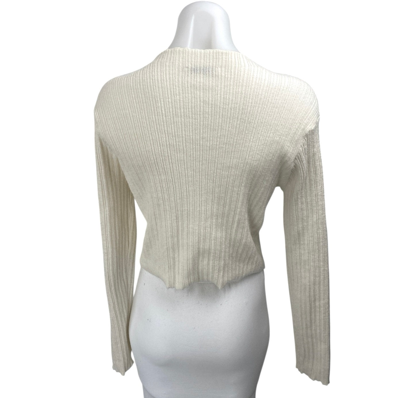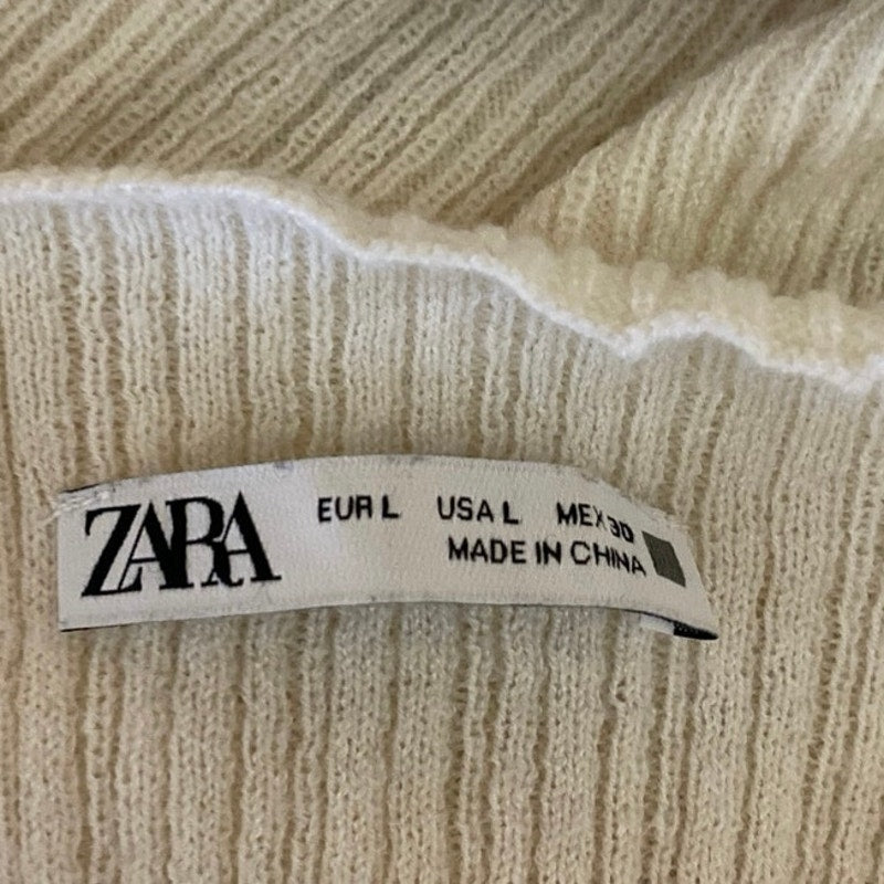 Zara Women's Cream White Ribbed Knit Long Sleeve Pullover Crop Sweater Top Size L