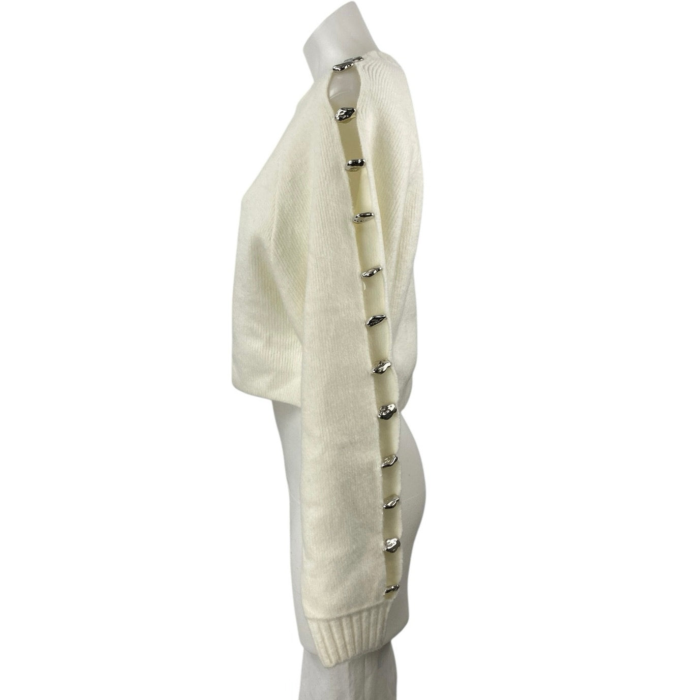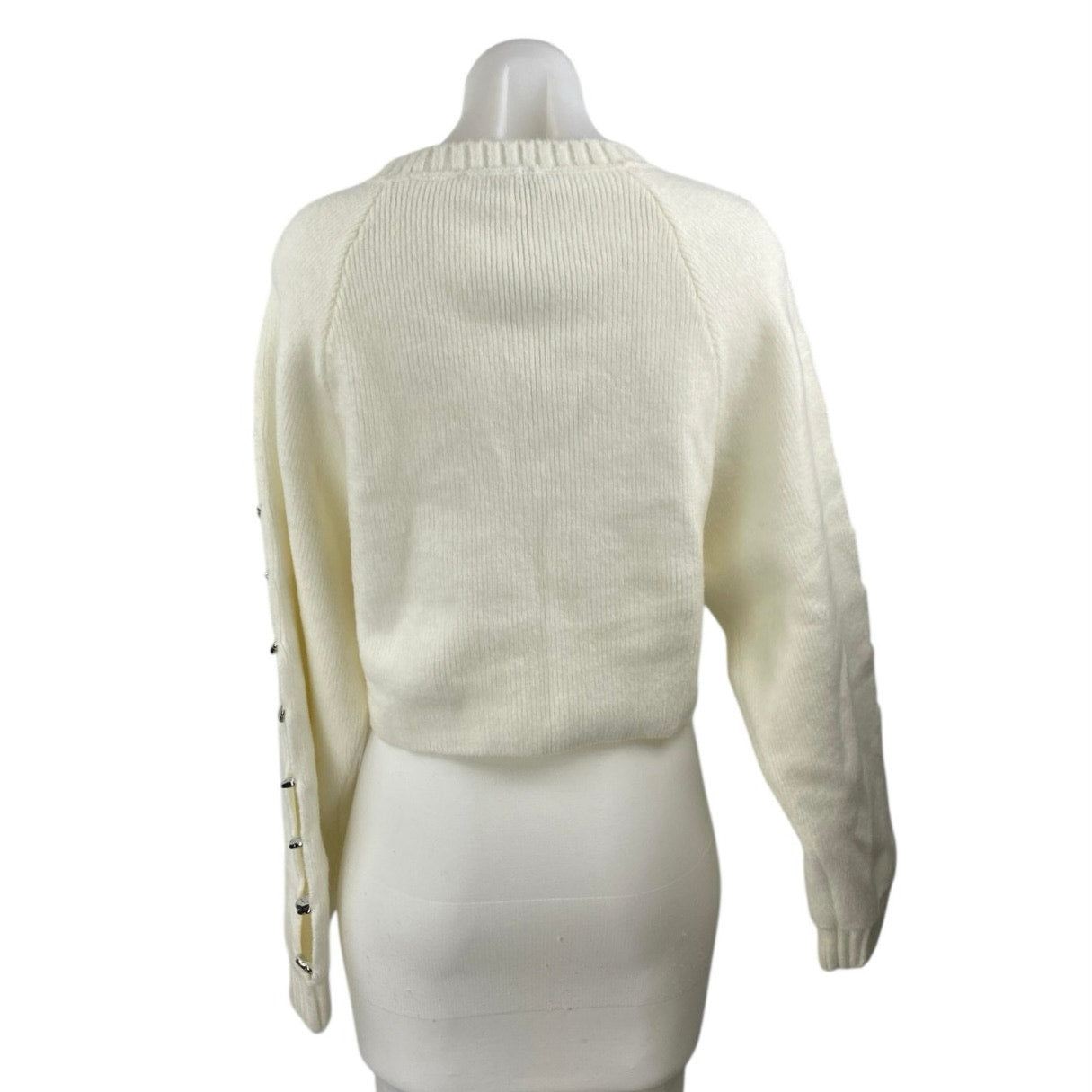 Zara Women's Cream White Studded Beaded Cutout Long Sleeve Crop Sweater Top Size S