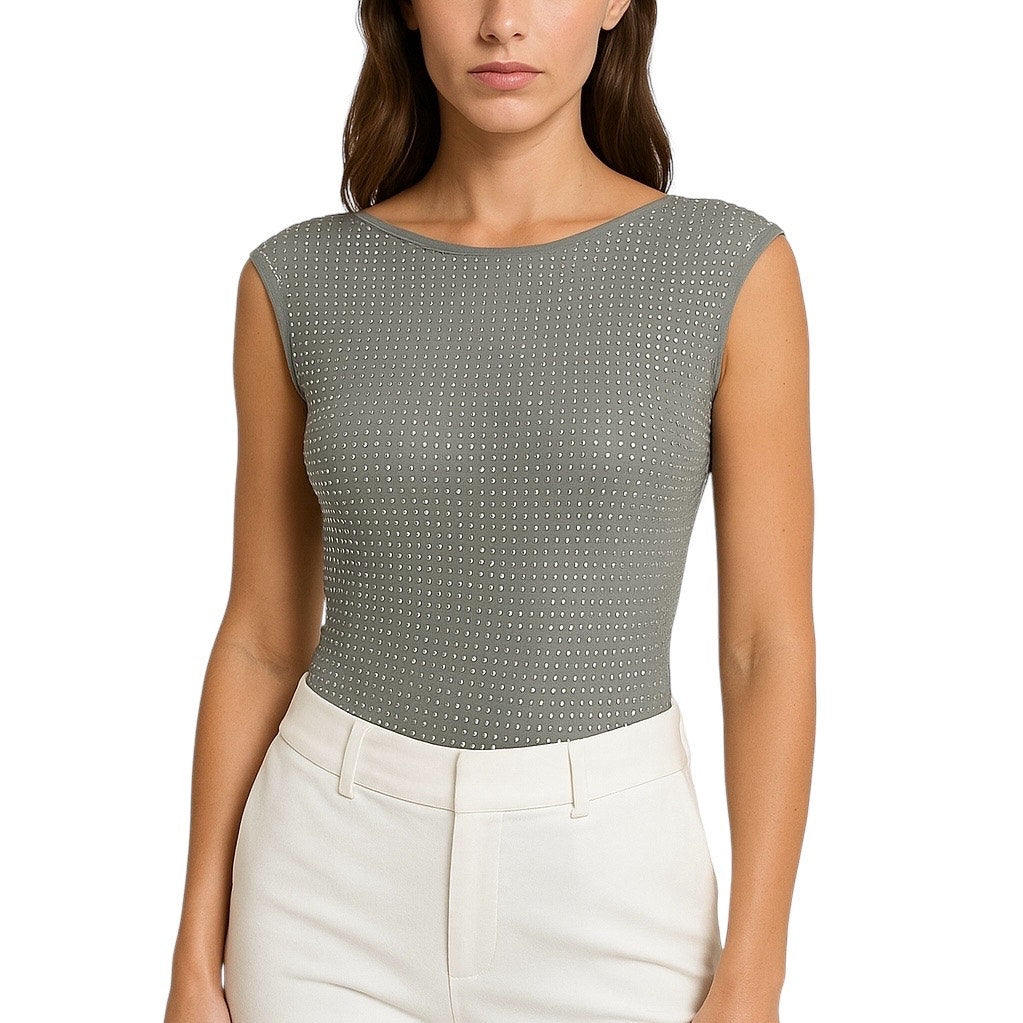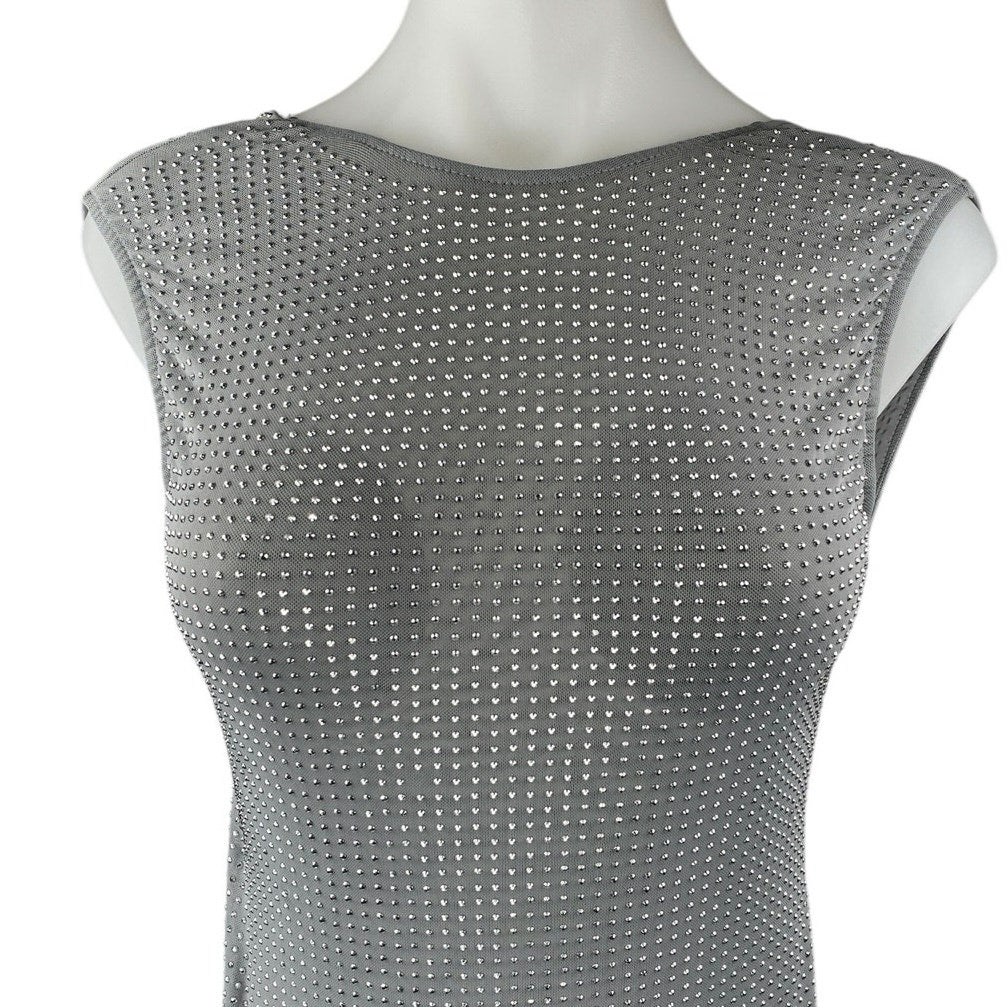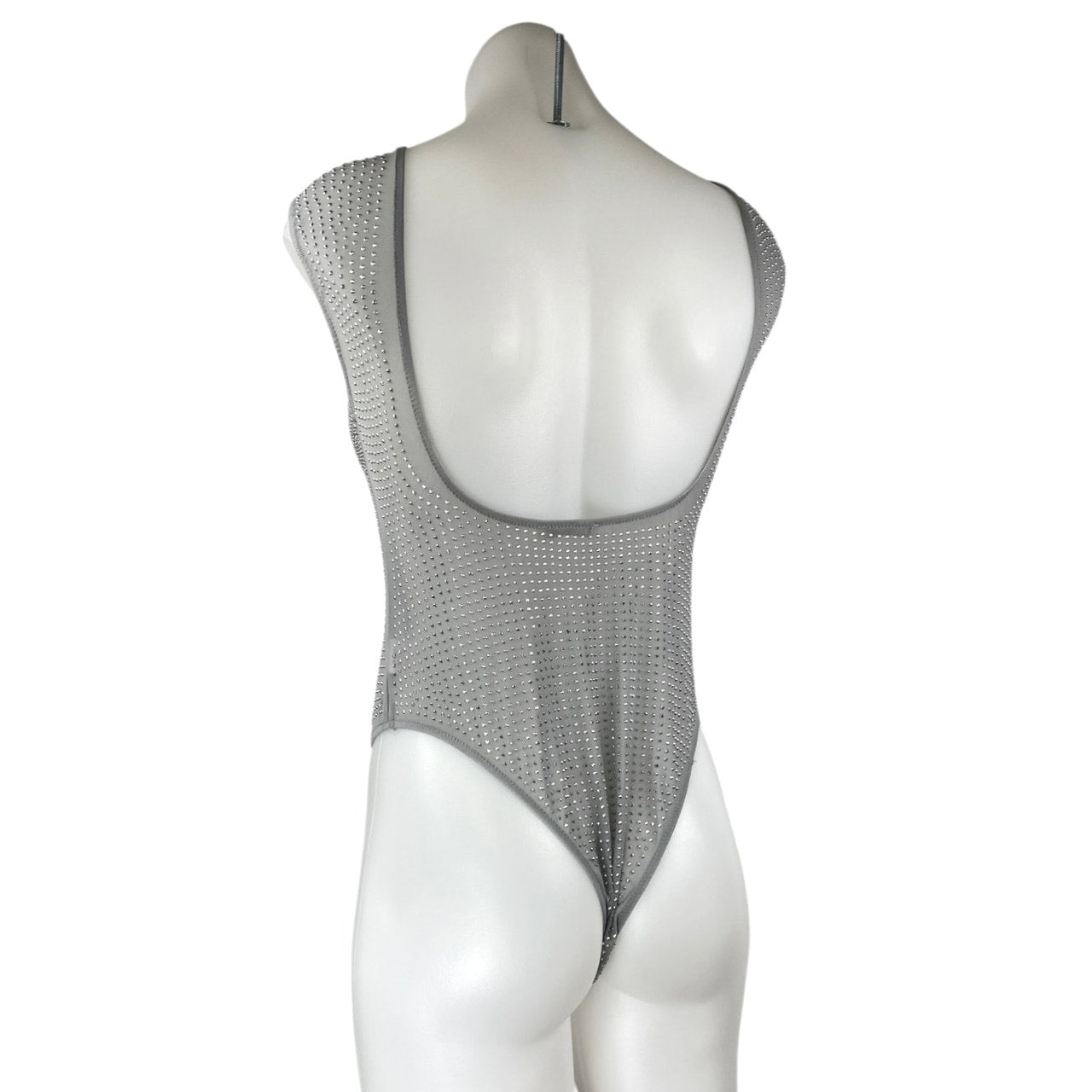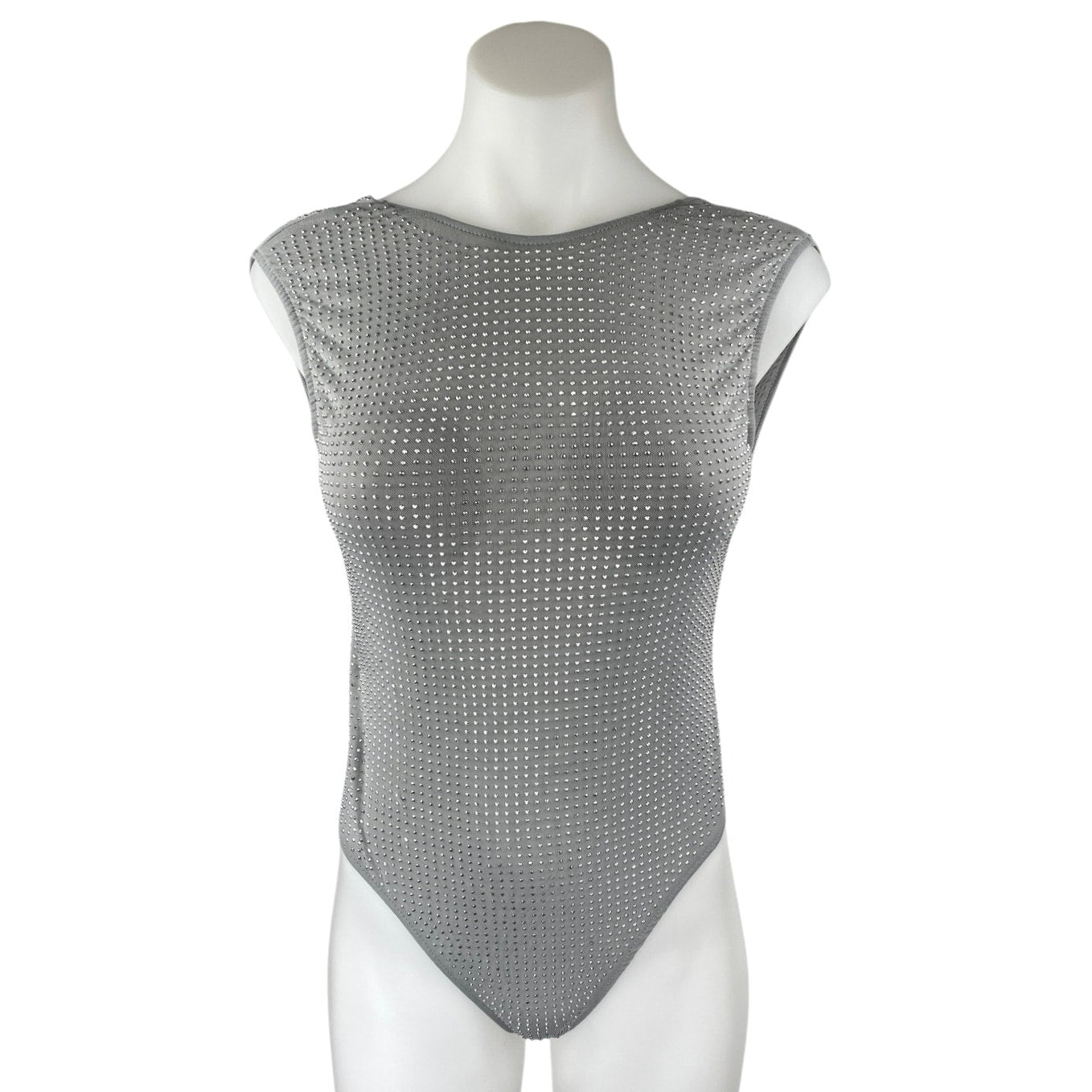 Zara Women's Gray Rhinestone Sleeveless Open Back Tank Bodysuit Top Size S