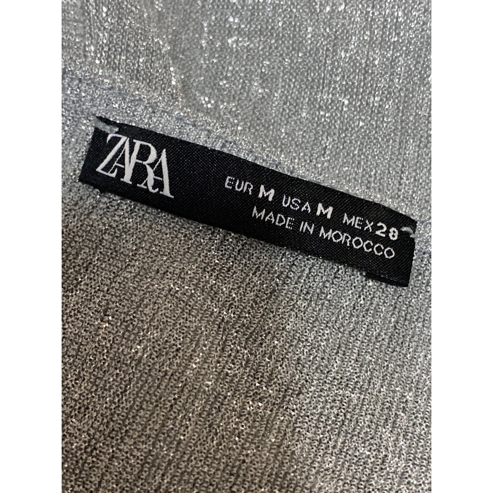 Zara Women's Gray Silver Metallic Sparkle Ruffle Flutter Sleeve Blouse Top Size M