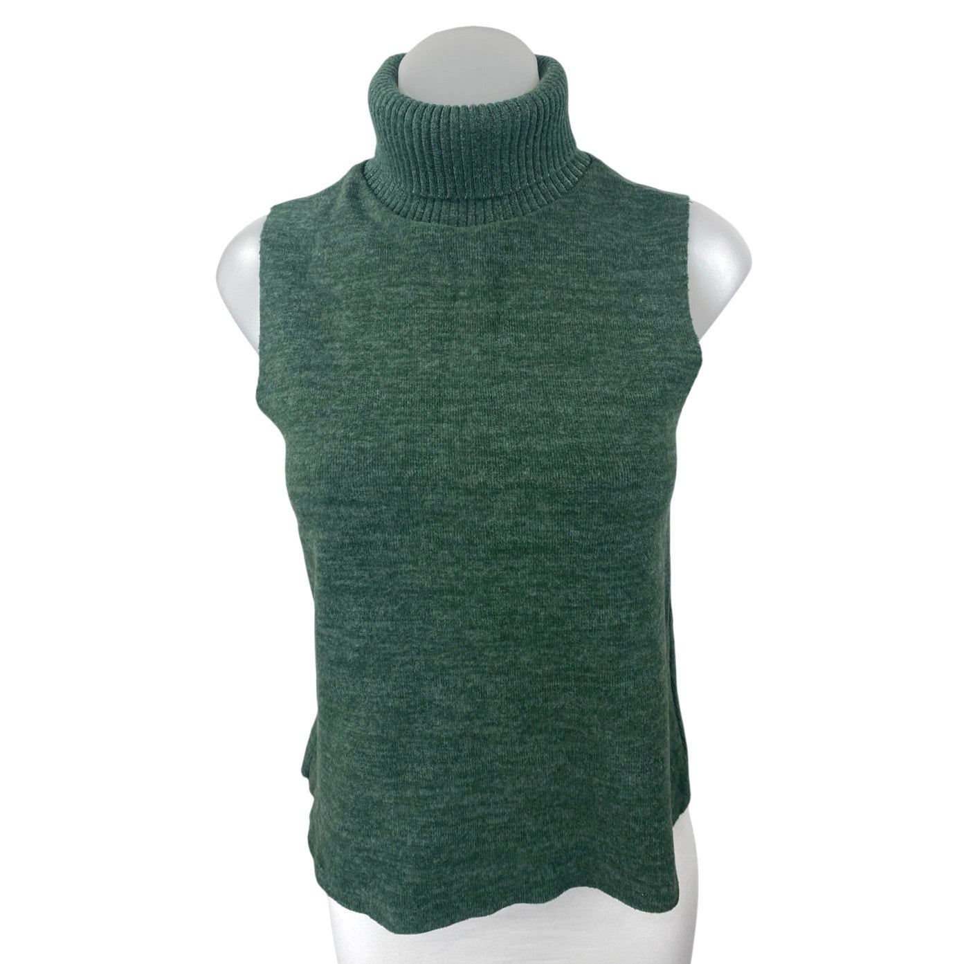 Zara Women's Green Knit Sleeveless Turtleneck Cami Sweater Vest Tank Top Size S