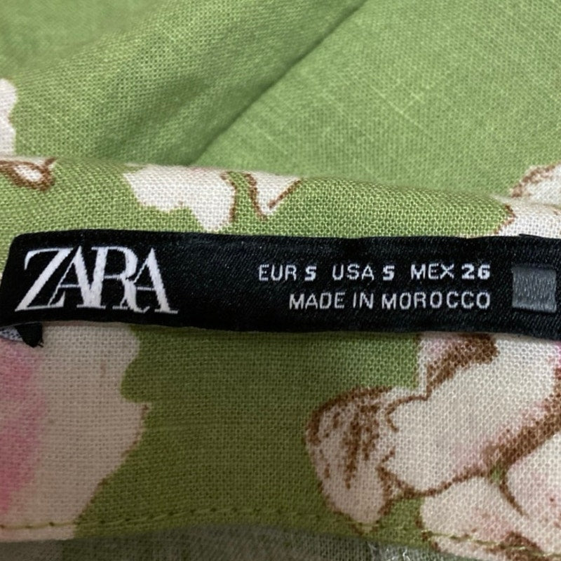 Zara Women's Green Linen Floral Buttons Slit Midi Maxi Straight Pencil Skirt S