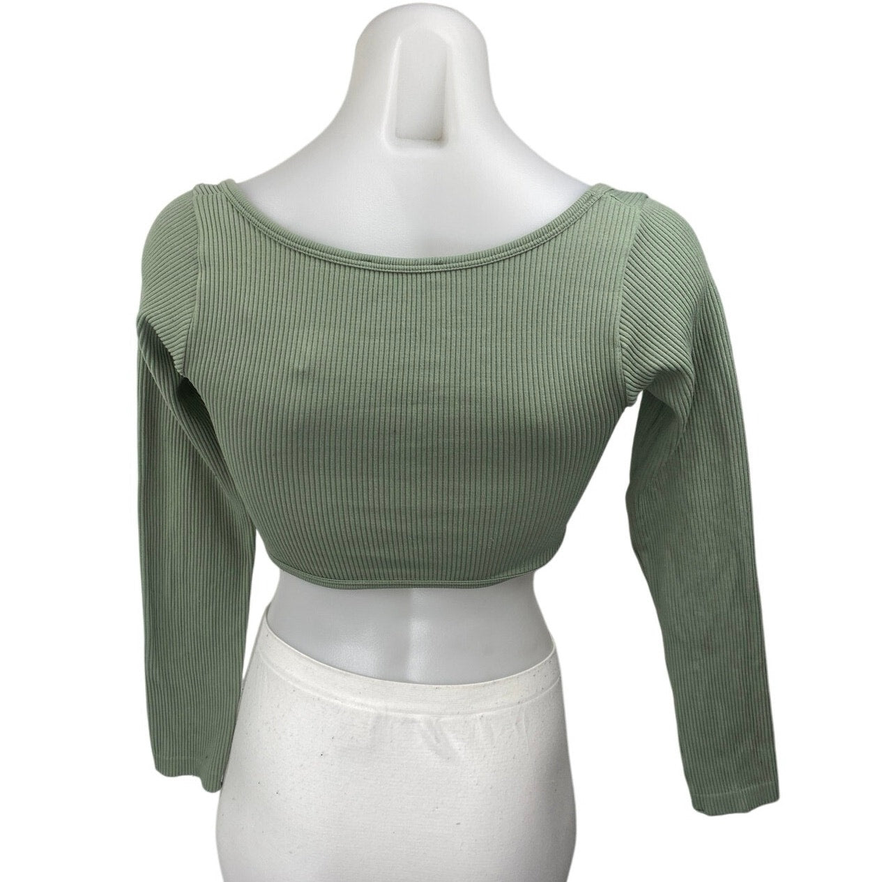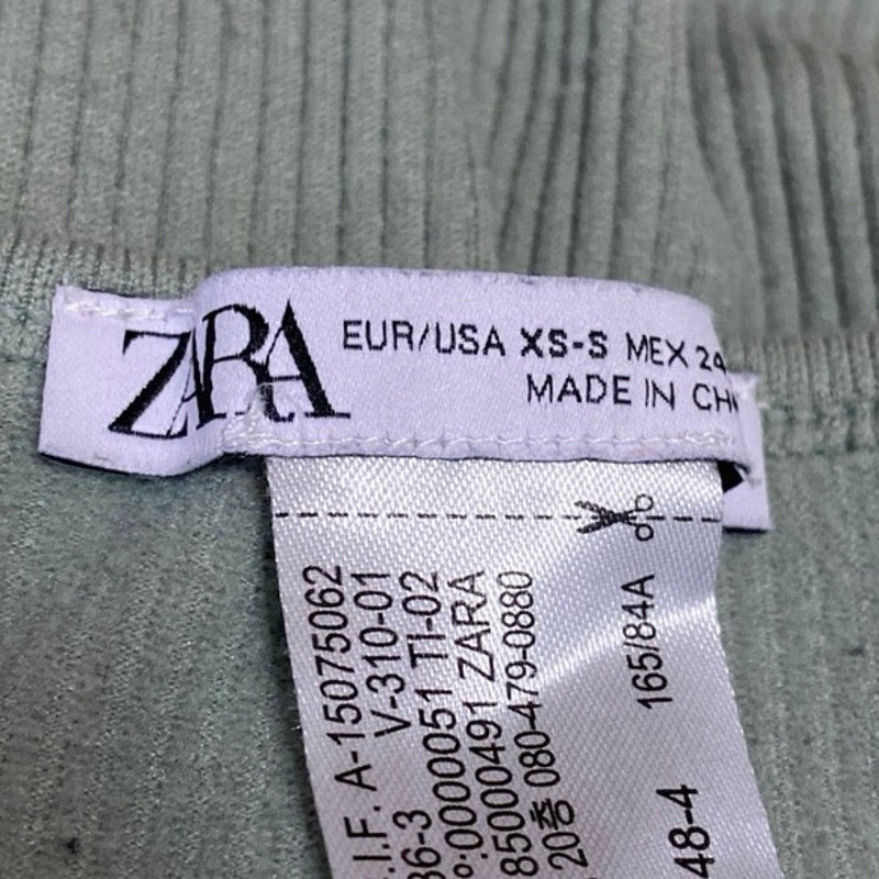 Zara Women's Green Rib Knit Long Sleeve Sweetheart Neck Crop Sweater Top XS/S