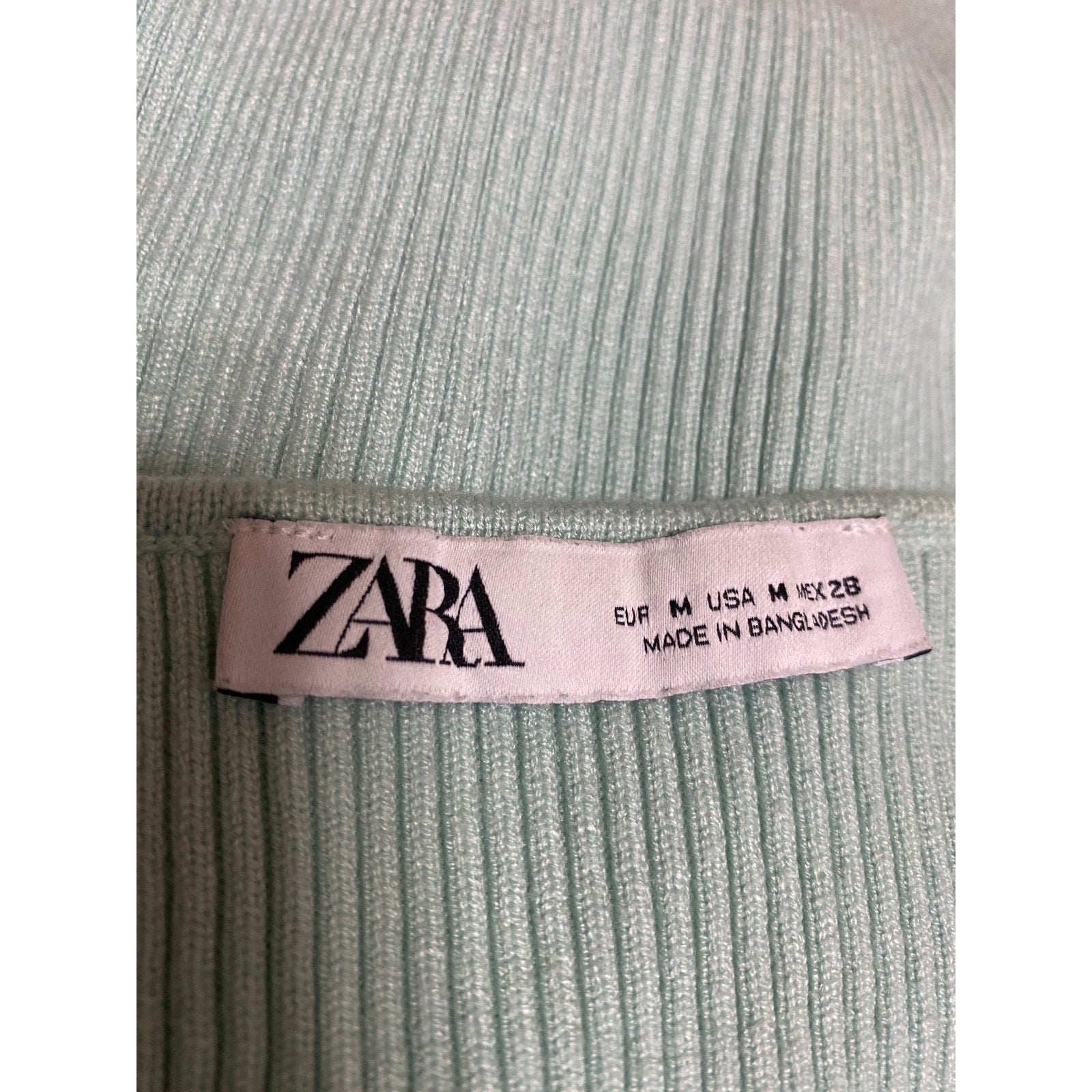 Zara Women's Green Rib Knit Square Neck Long Sleeve Button Crop Sweater Top Size M
