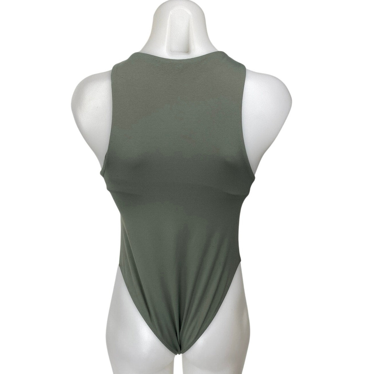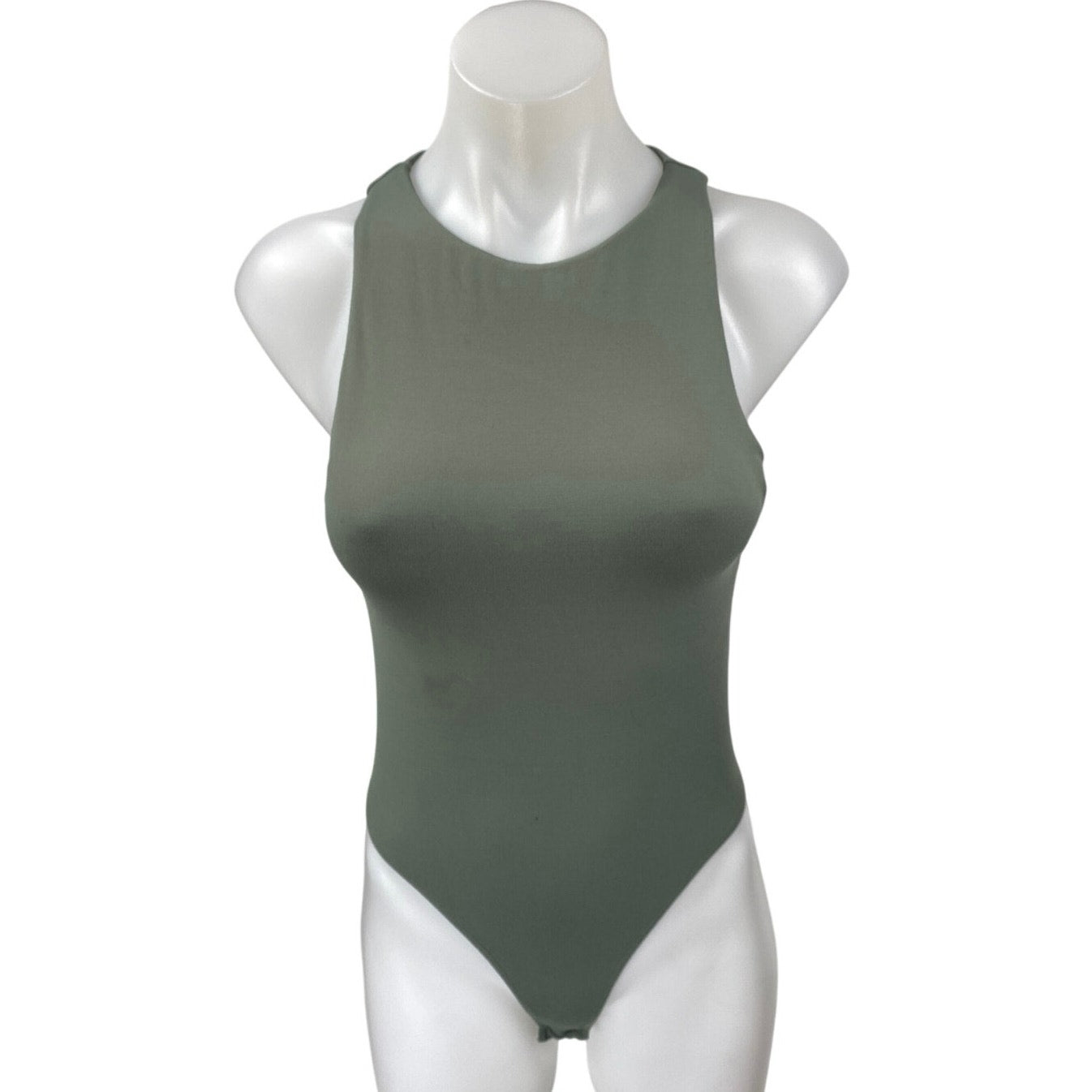 Zara Women's Green Sleeveless Racerback High Neck One Piece Bodysuit Tank Top M