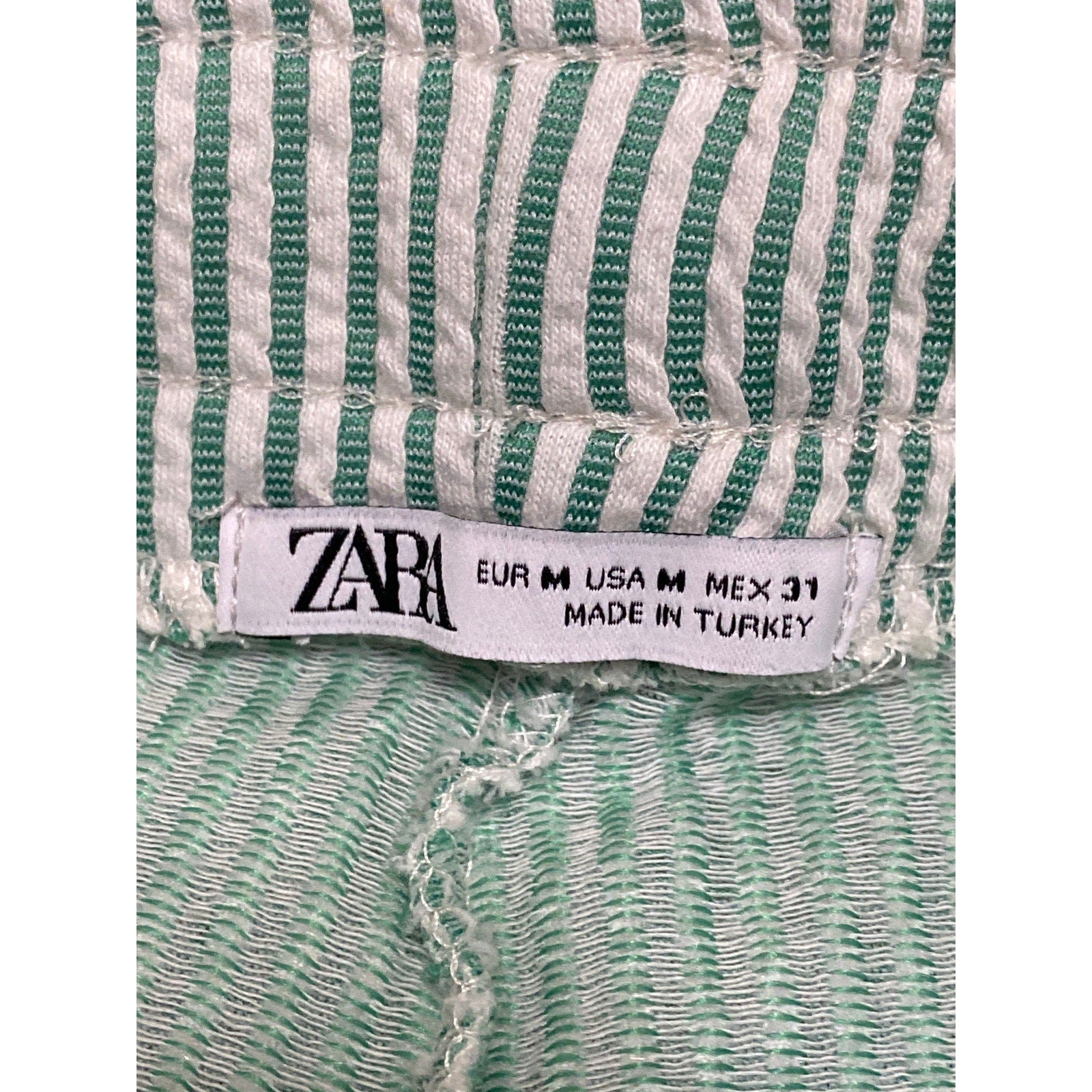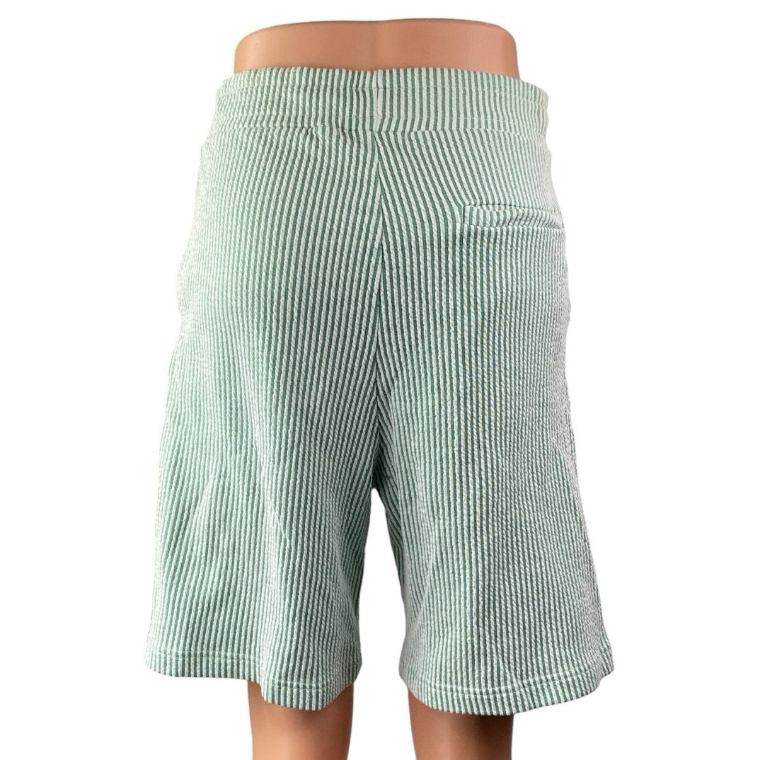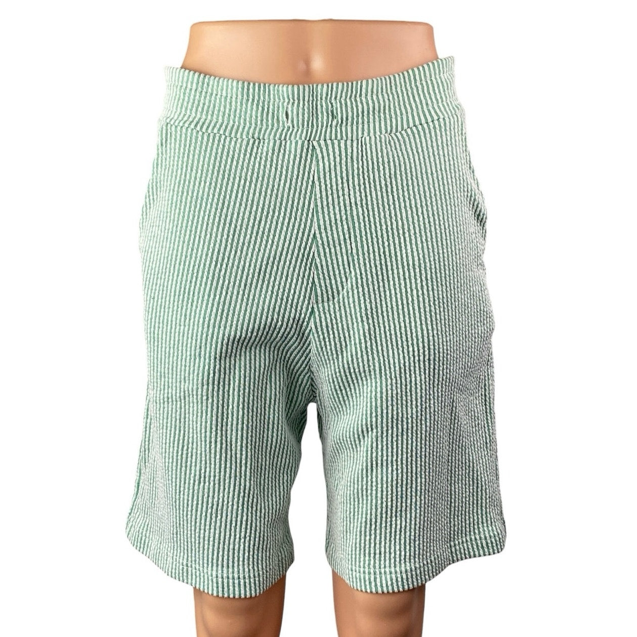 Zara Women's Green Striped High Waisted Straight Bermuda Chino Shorts Size M