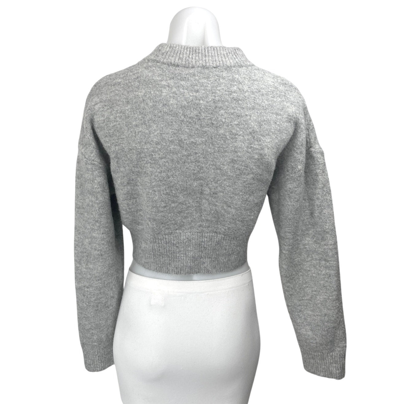 Zara Women's Grey Long Sleeve Mock Neck Knit Fleece Cropped Sweater Top Size M