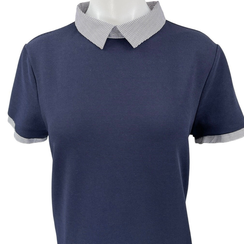 Zara Women's Navy Blue Knit Stripe Collar Short Sleeve Mini Polo Shift Dress Size L