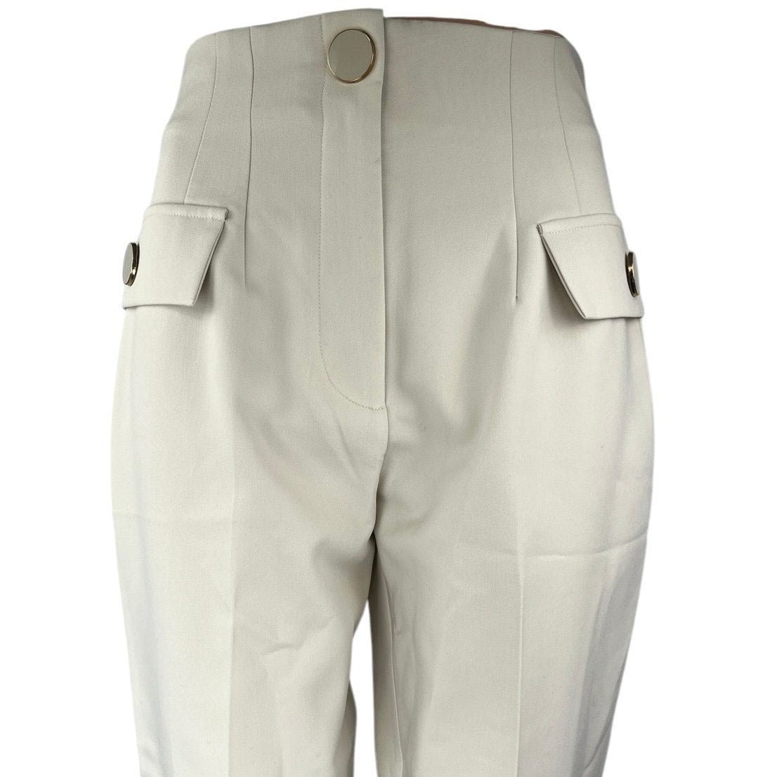 Zara Women's Off White High Waisted Pleated Straight Trouser Dress Pants Size S