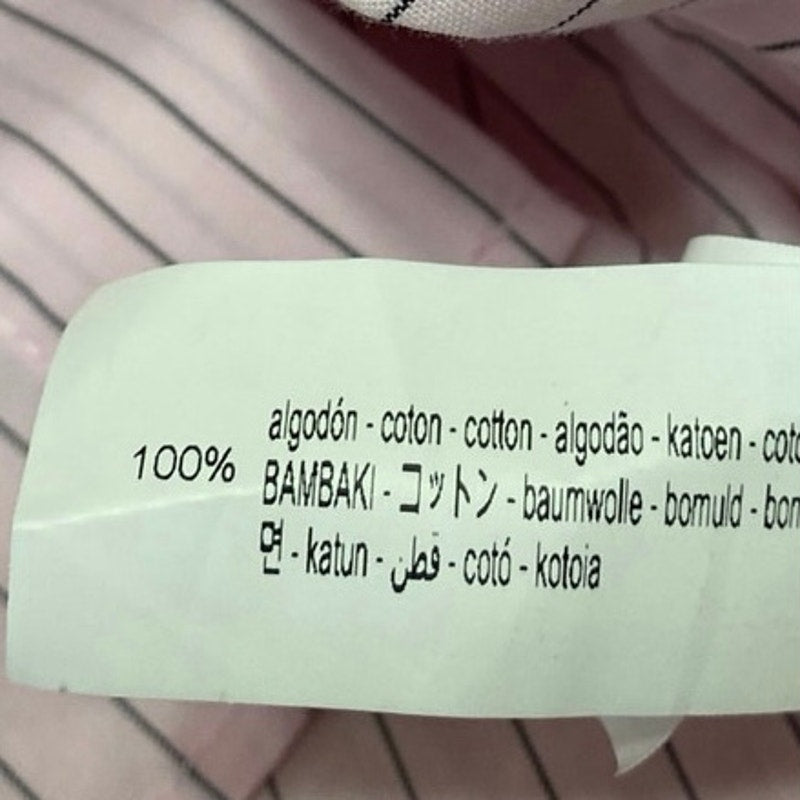 Zara Women's Pink Black Pinstriped Short Sleeve Button Down Shirt Top Size M