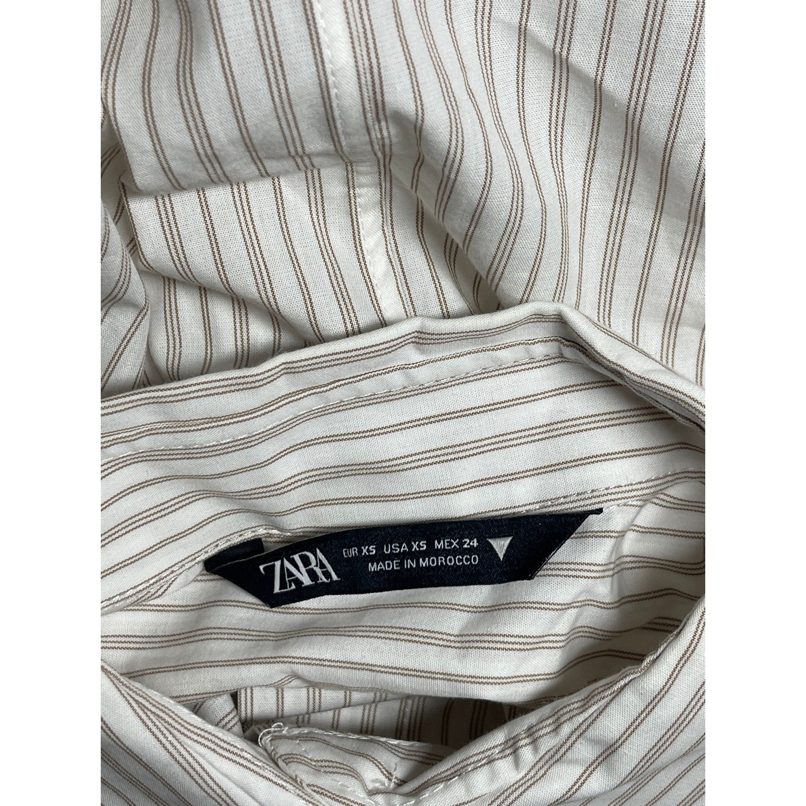 Zara Women's White Beige Striped Short Sleeve Pocket Button Down Shirt Top Sz XS