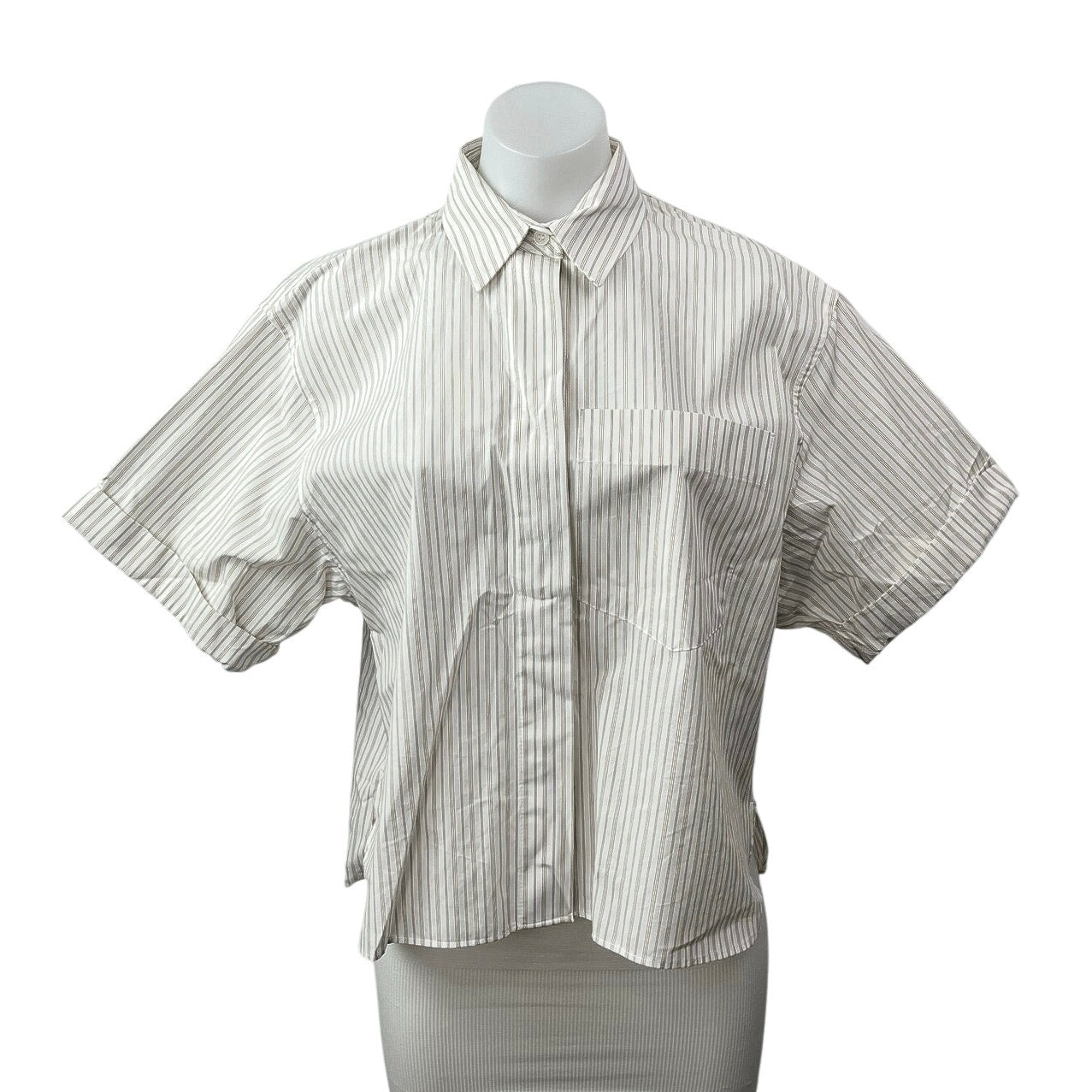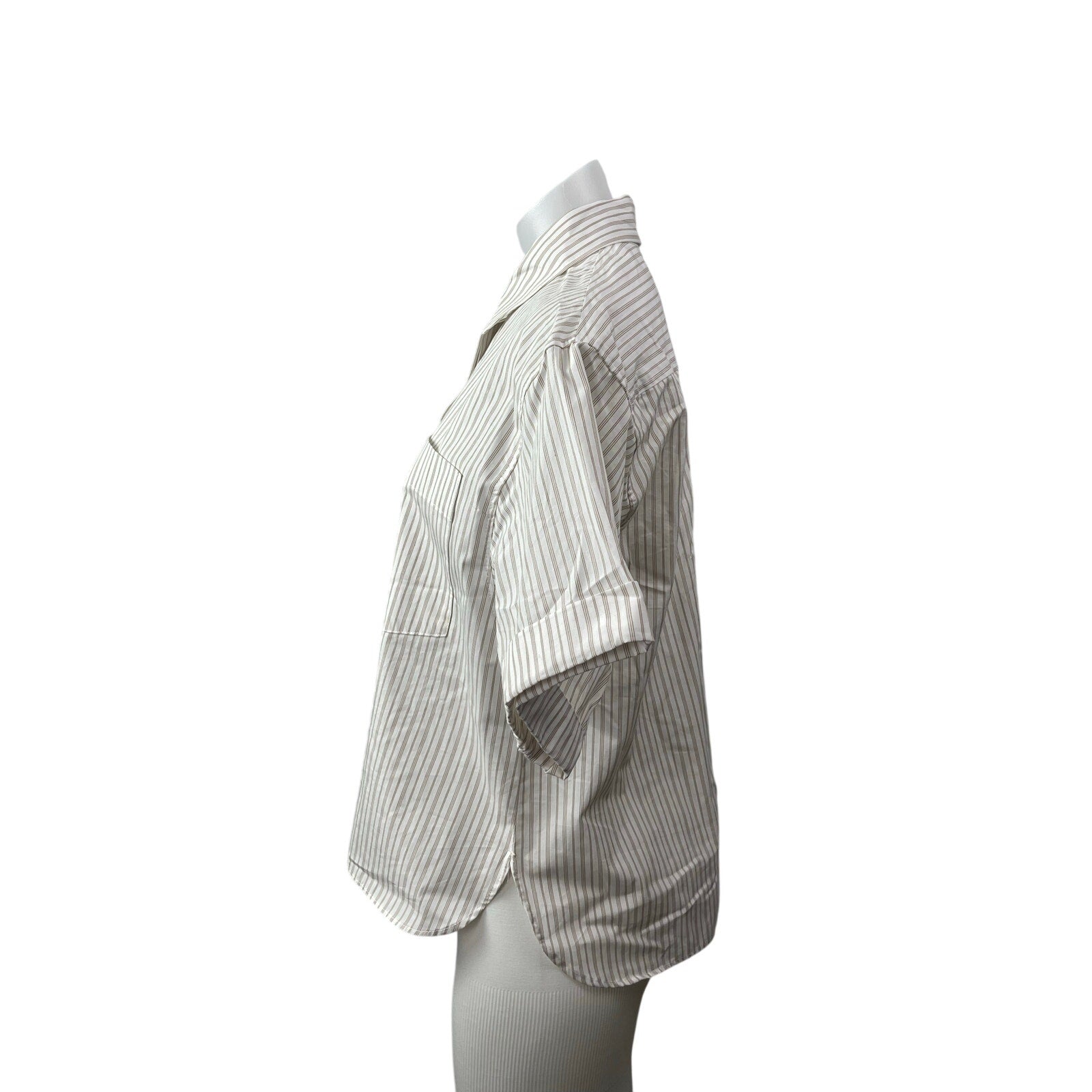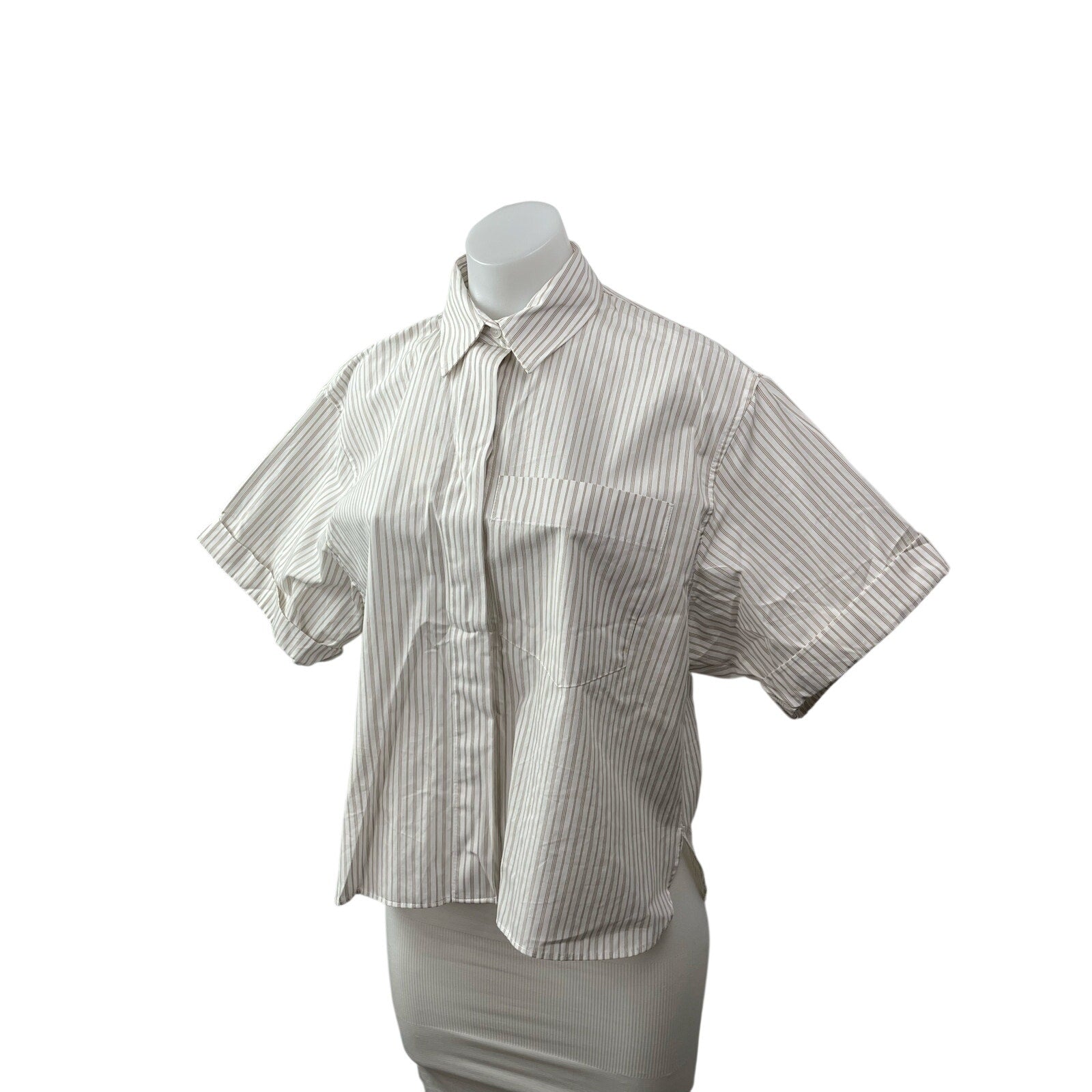 Zara Women's White Beige Striped Short Sleeve Pocket Button Down Shirt Top Sz XS