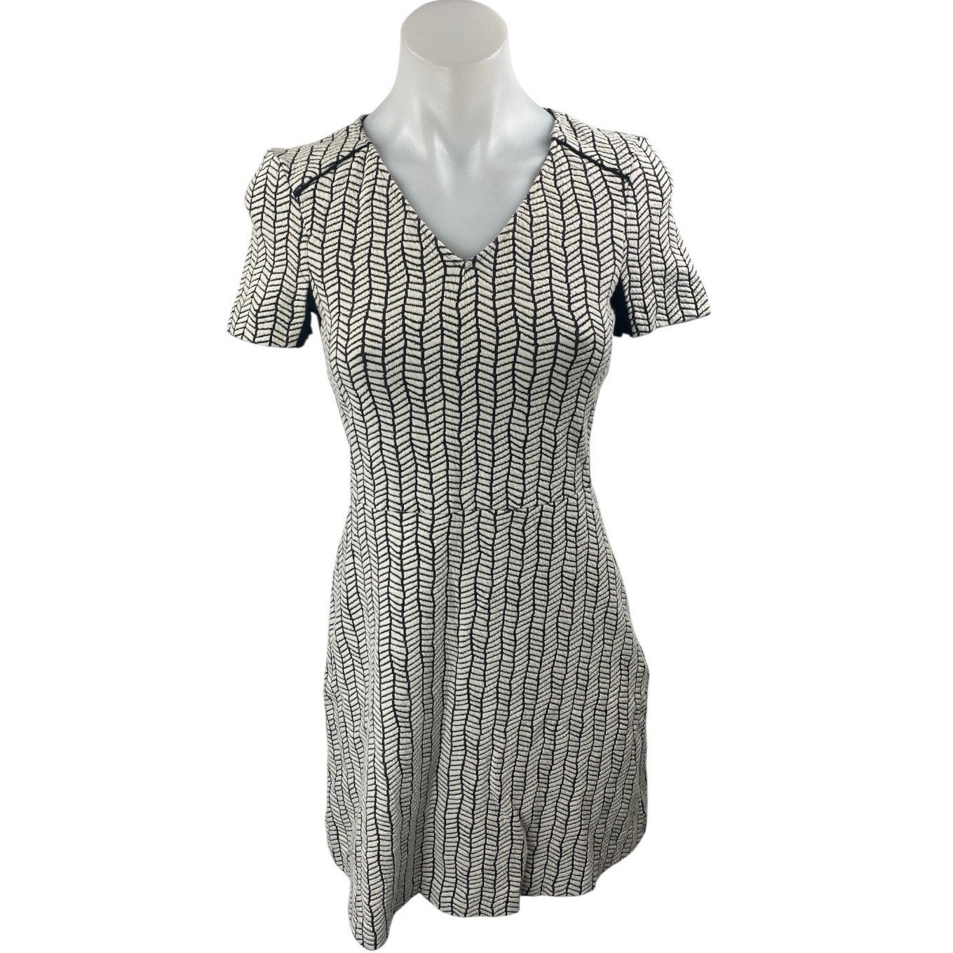Zara Women's White Black Short Sleeve Abstract A Line Mini Skater Dress Size XS