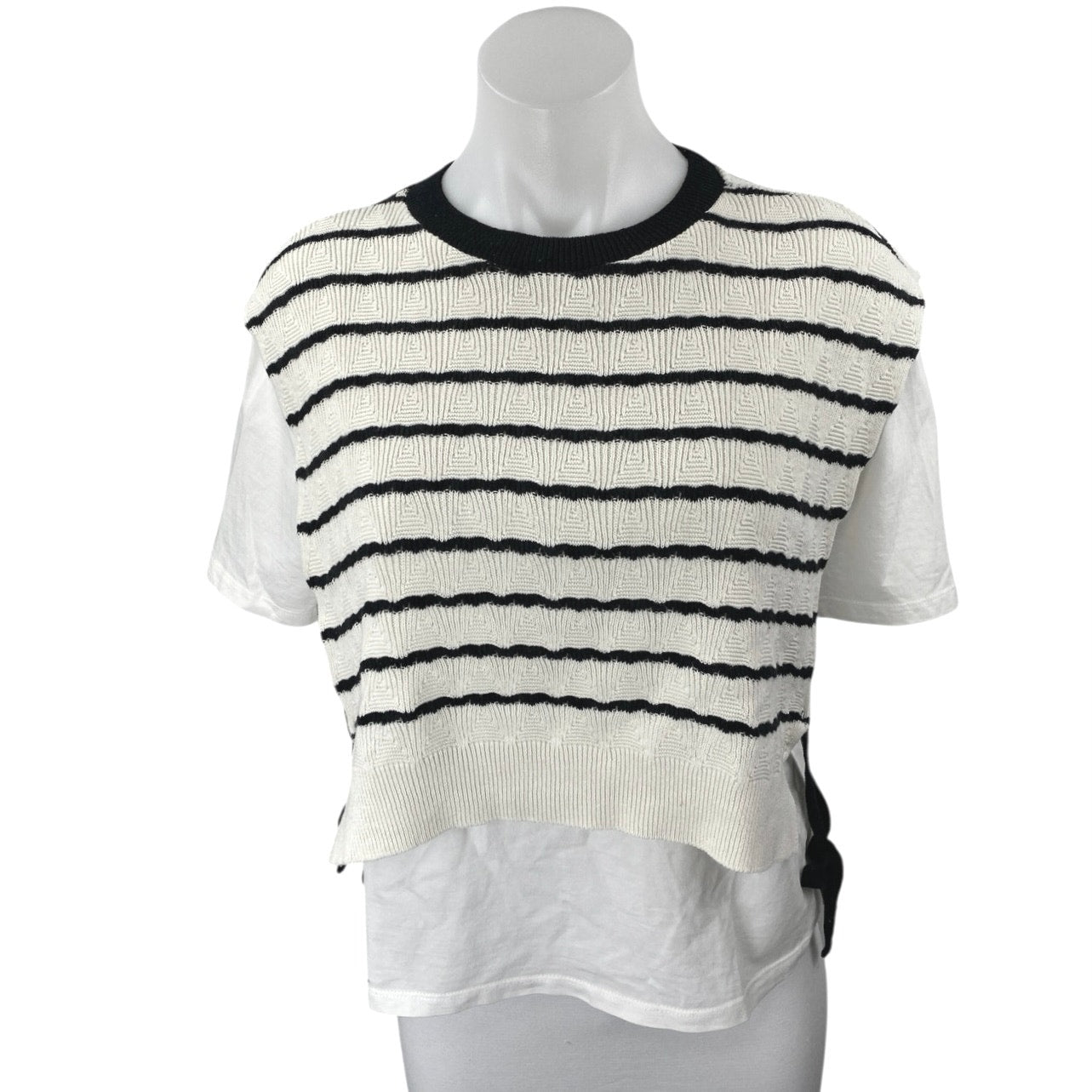 Zara Women's White Black Striped Overlay Short Sleeve Swaeter Vest Top Size M