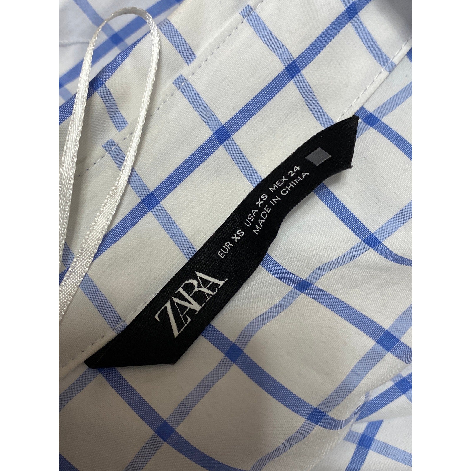 Zara Women's White Blue Checkered Long Sleeve Button Up Oversized Shirt Top XS