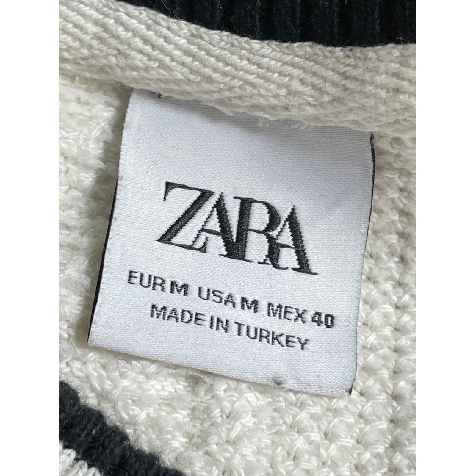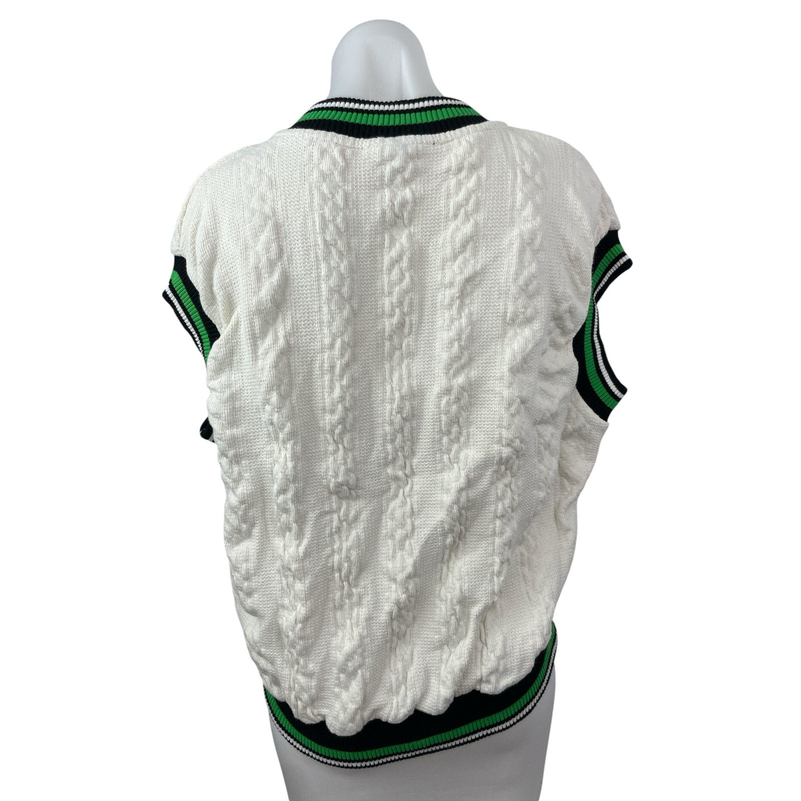 Zara Womens White Cable Knit V Neck Sleeveless Cricket Tennis Sweater Vest Top M