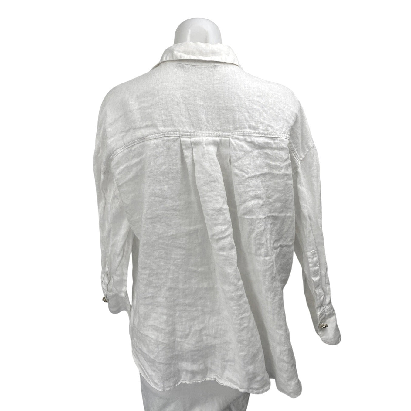 Zara Women's White Cotton Gauze Long Sleeve Button Down Blouse Shirt Top Size M
