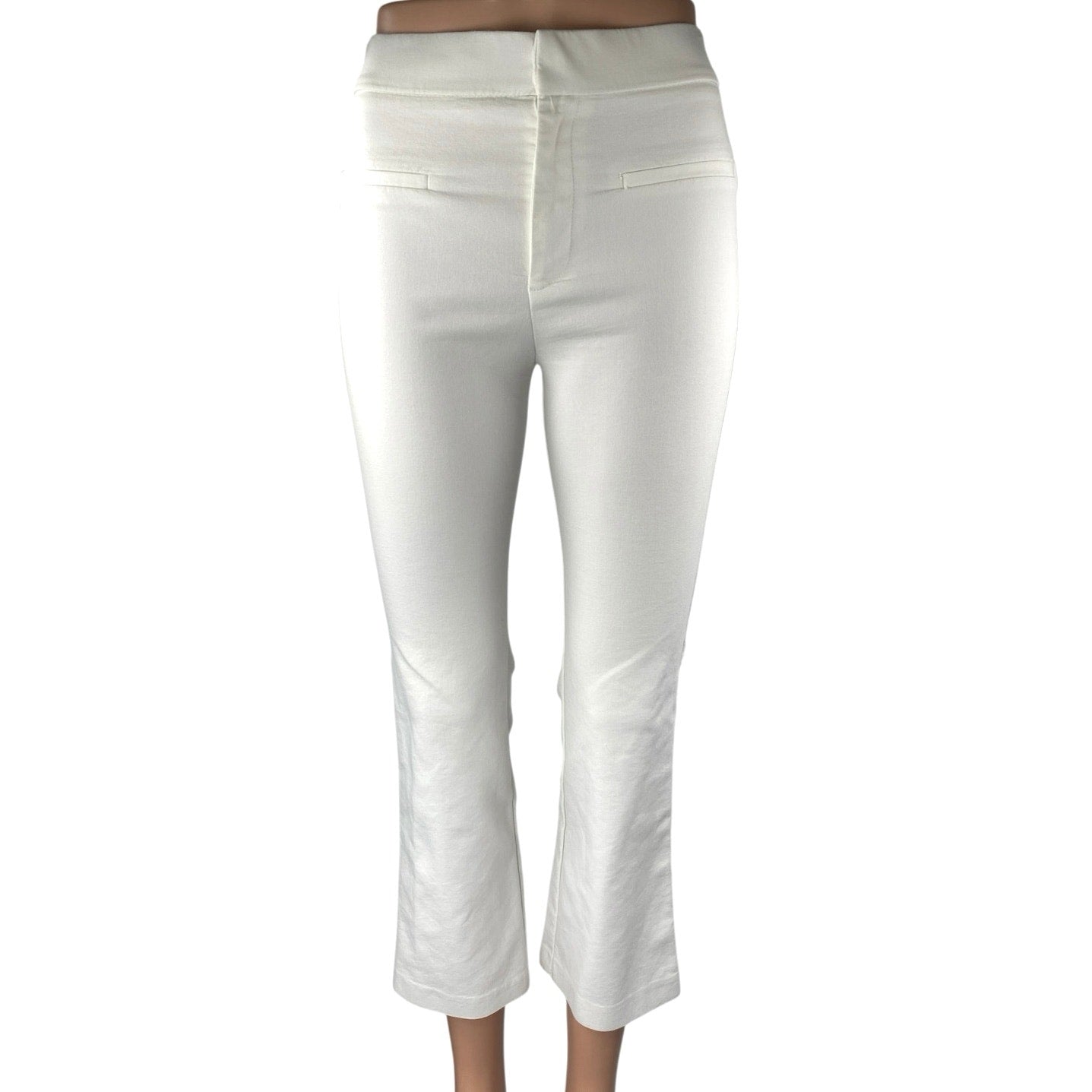 Zara Women's White High Waisted Slim Flared Cropped Trousers Pants Size XS