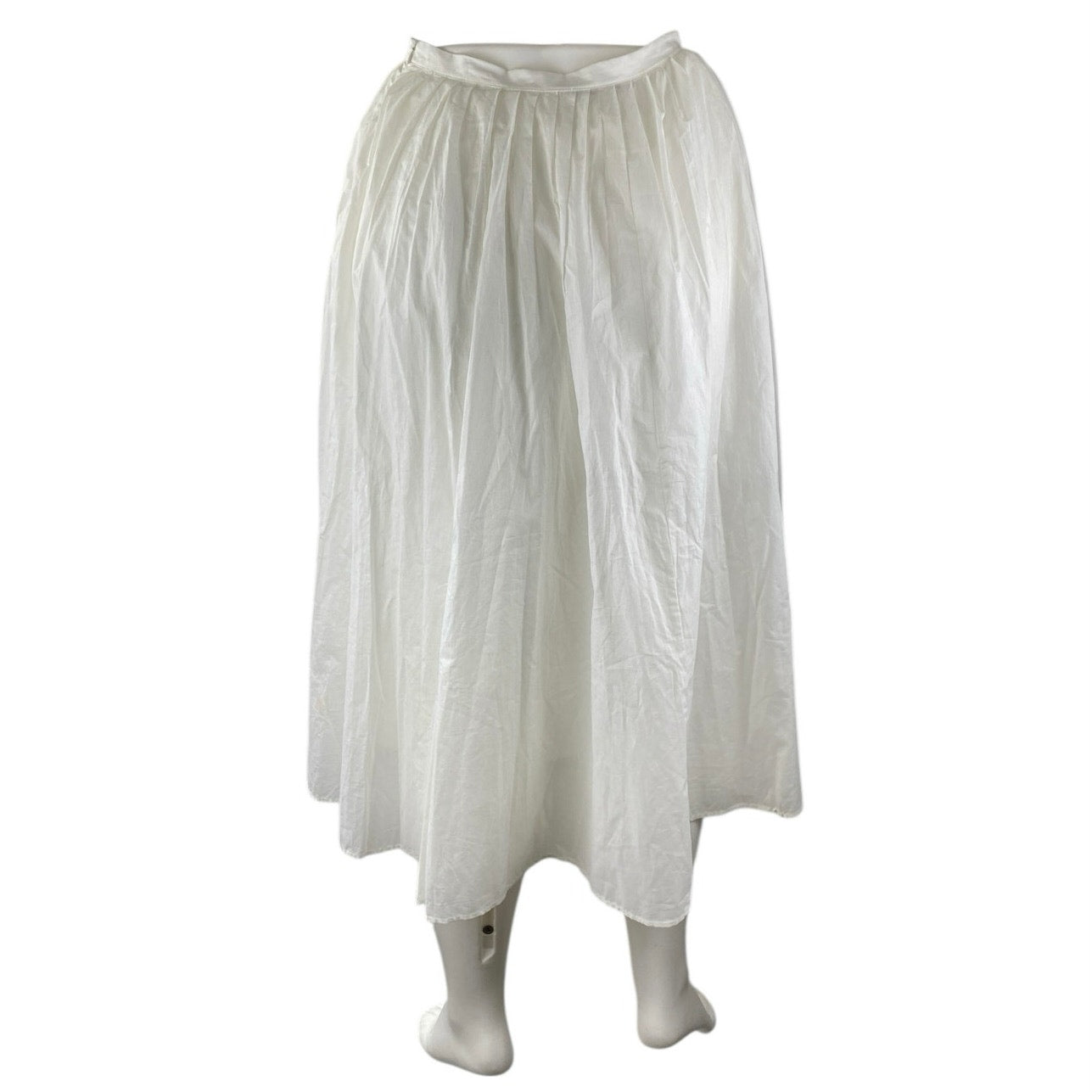 Zara Womens White High Waisted Zip Pleated Plisse Flare A Line Midi Skirt Size L