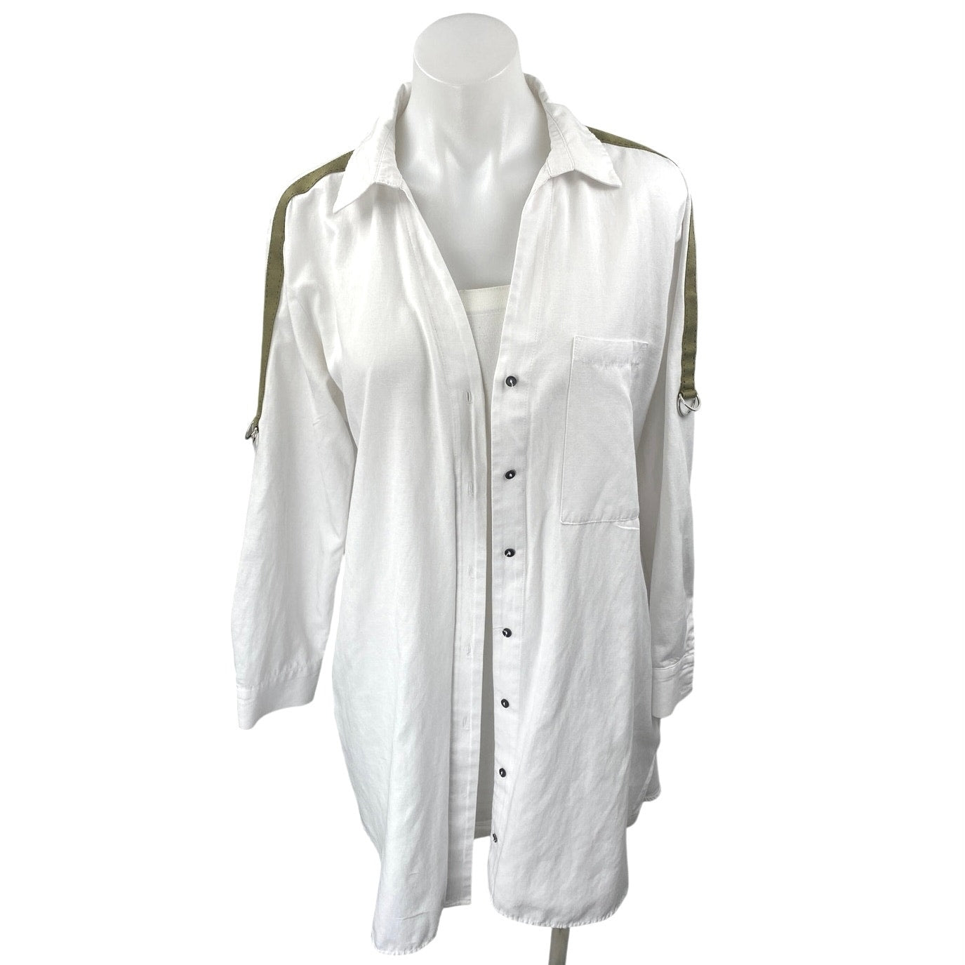 Zara Women's White Long Sleeve Button Down Oversized Pocket Blouse Shirt Top M
