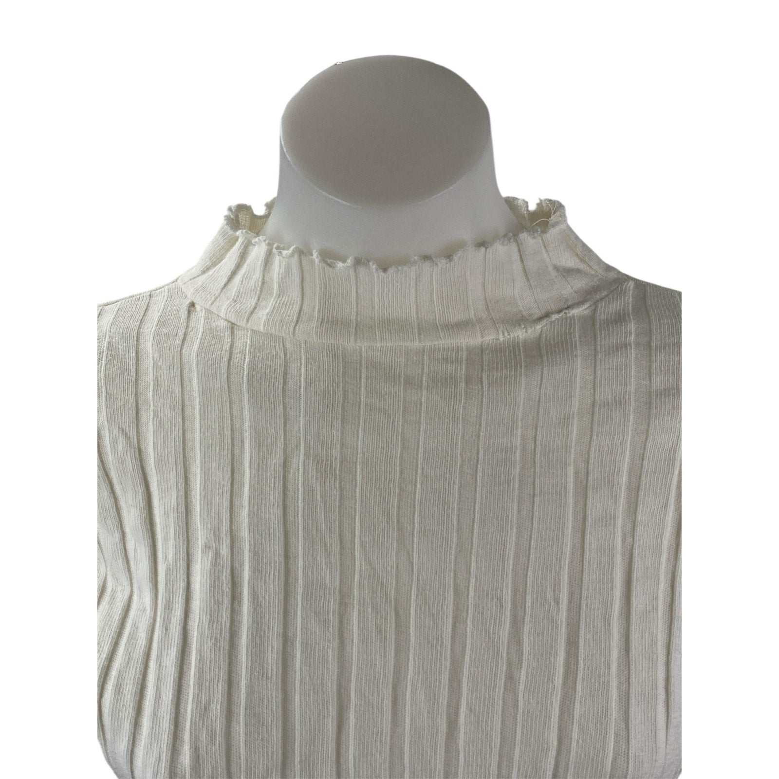 Zara Women's White Long Sleeve Ribbed Knit Lettuce Mock Neck Sweater Top Size L