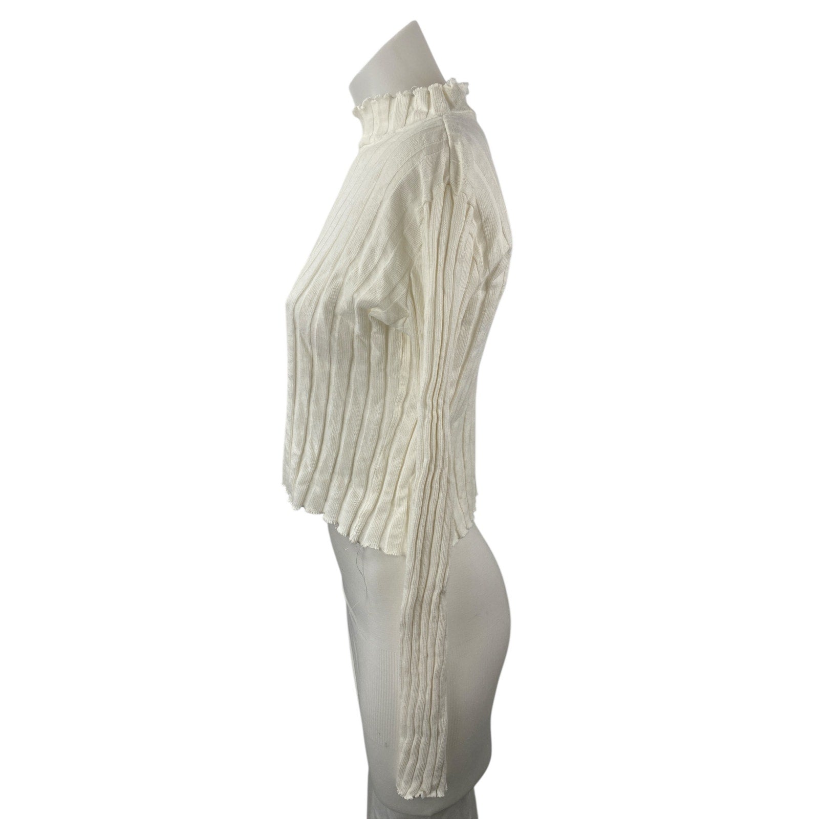 Zara Women's White Long Sleeve Ribbed Knit Lettuce Mock Neck Sweater Top Size L