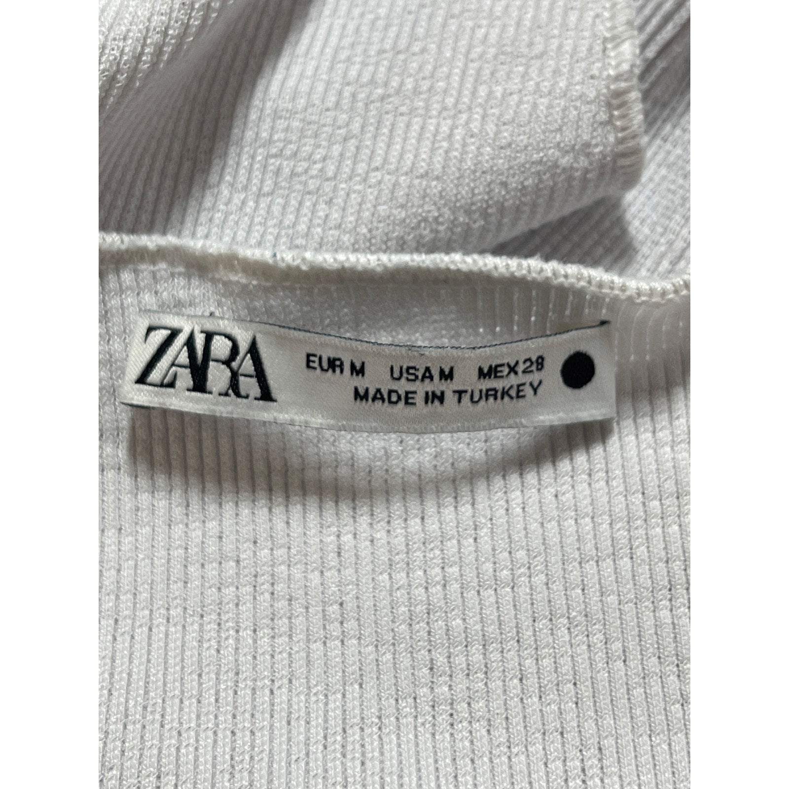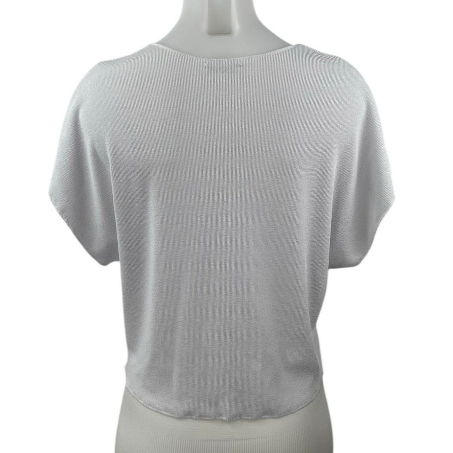 Zara Women's White Short Drop Sleeve Deep V Neck Boxy Knit T Shirt Tee Top Sz M