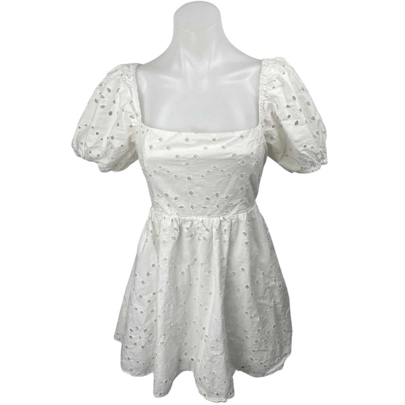 Zara Women's White Short Puff Sleeve Eyelet Embroidered Fit & Flare Mini Dress M