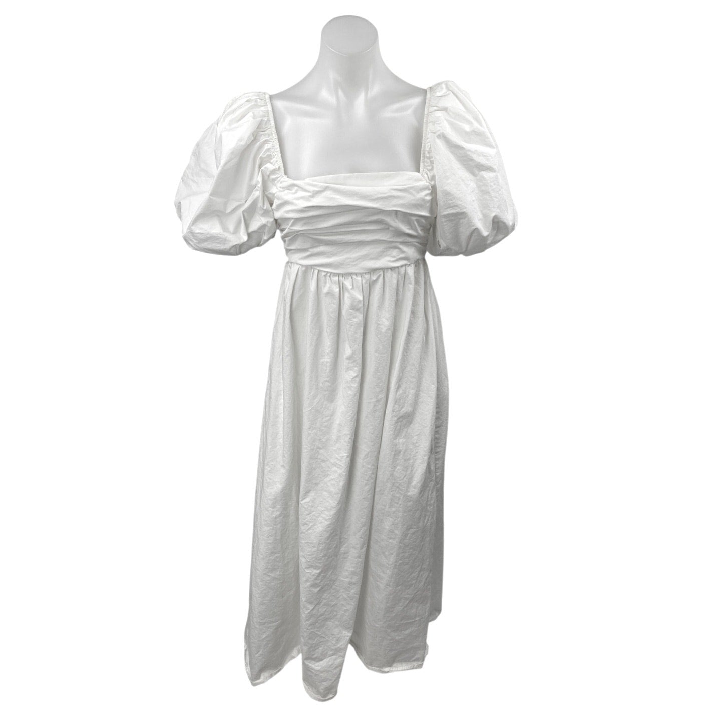 Zara Women's White Short Puff Sleeve Square Neck Zipper Maxi A-Line Dress Size S