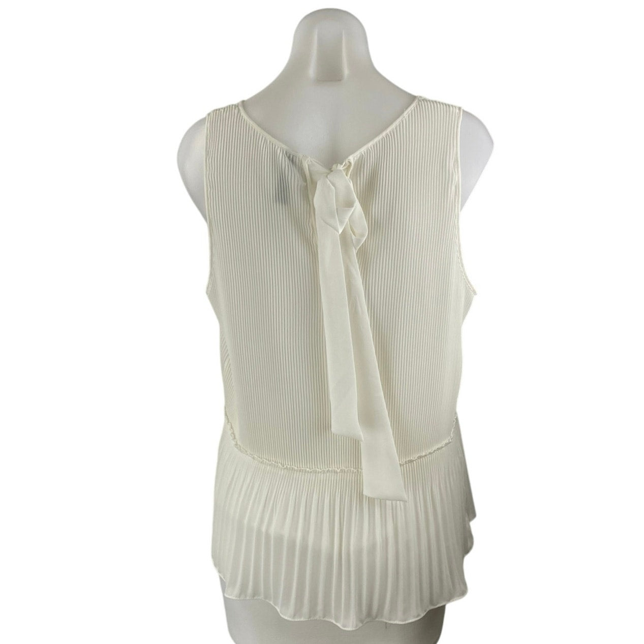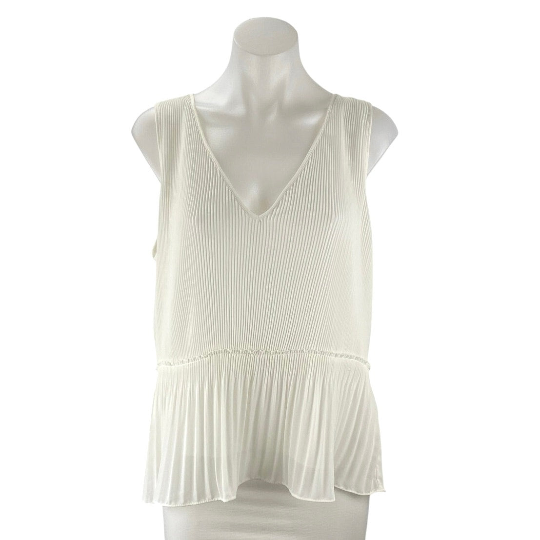 Zara Women's White Sleeveless Tie Plisse V Neck Peplum Tank Blouse Top Size M