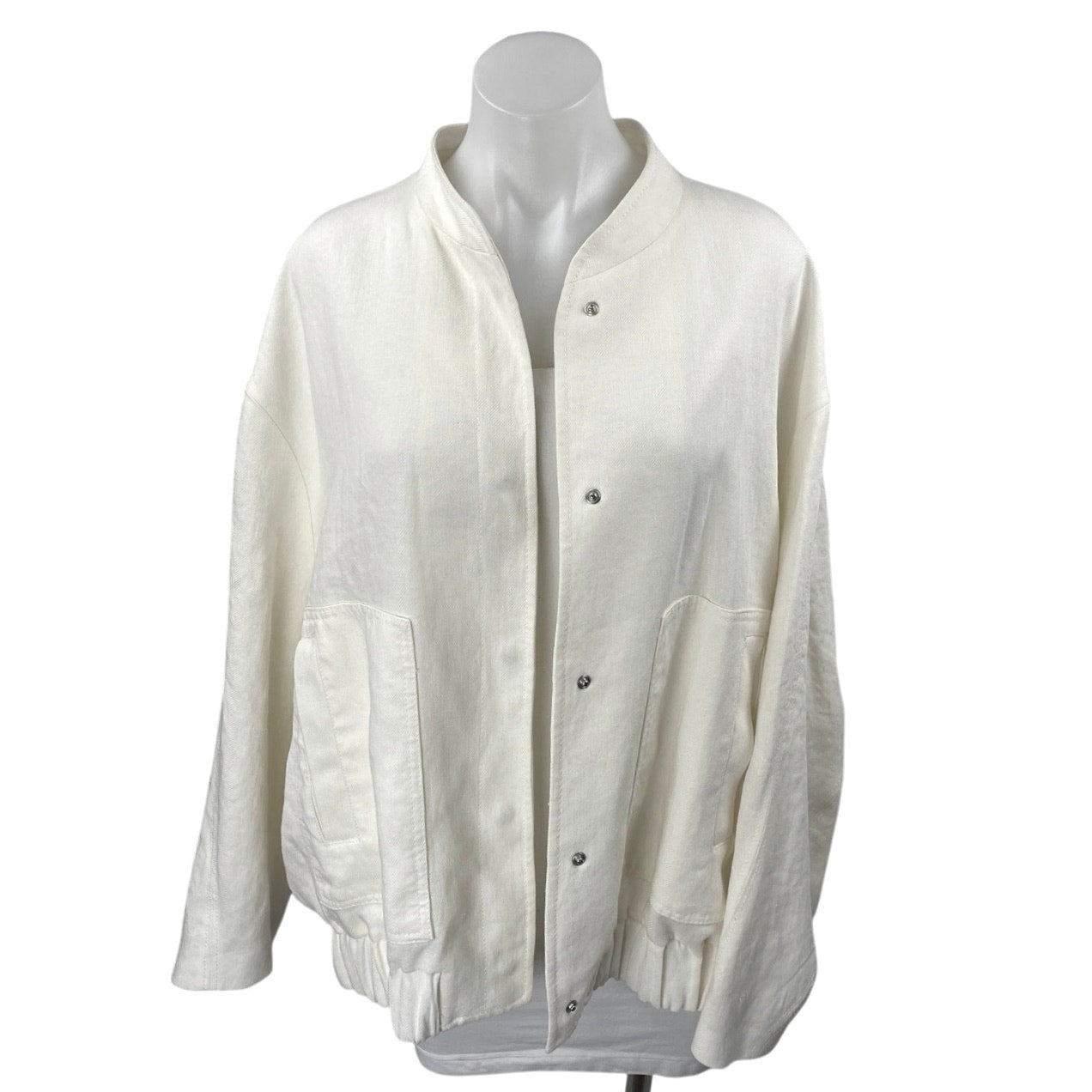 Zara Women's White Snap Button Down Long Sleeve Pockets Oversized Coat Jacket M