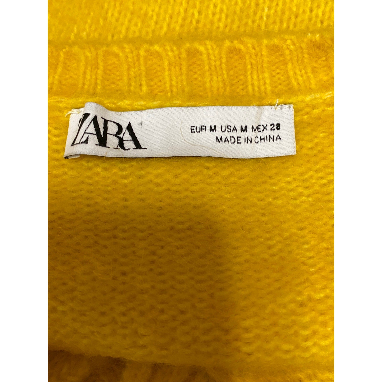 Zara Women's Yellow Long Sleeve Knit Alpaca Button Up Cardigan Sweater Top Sz M