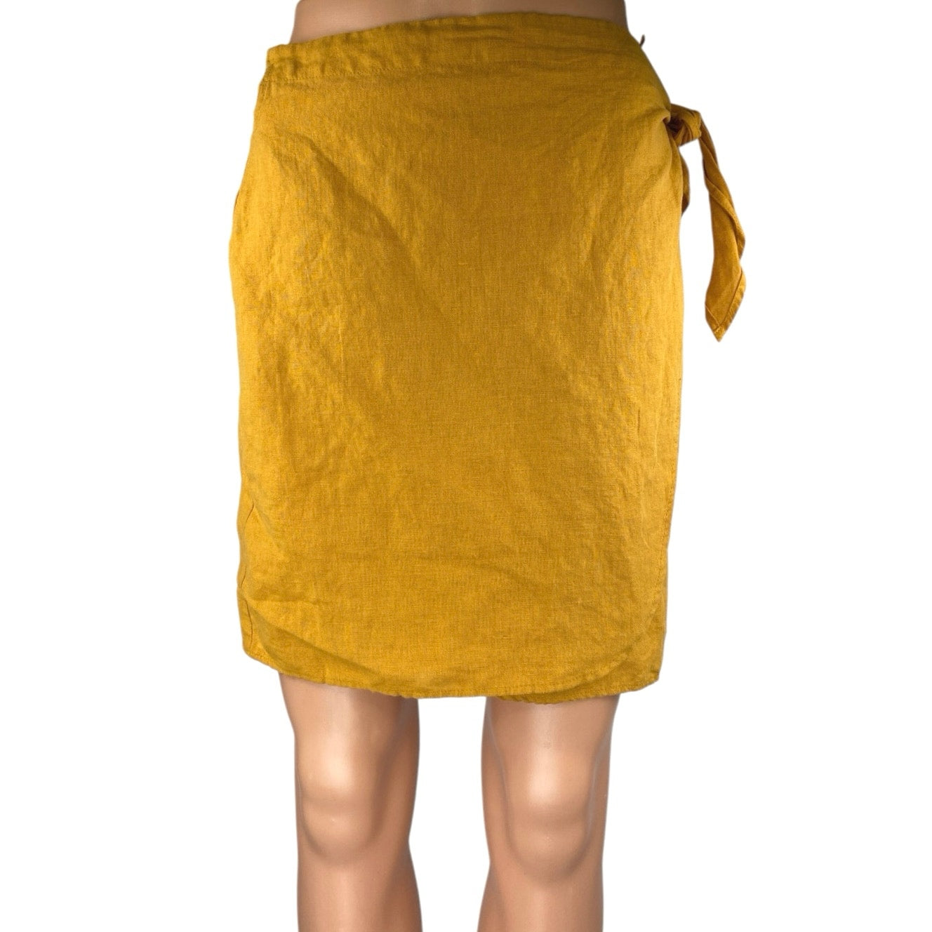 Zara Yellow Linen Tie Waist Lightweight Mini Straight Pencil Wrap Skirt Size L